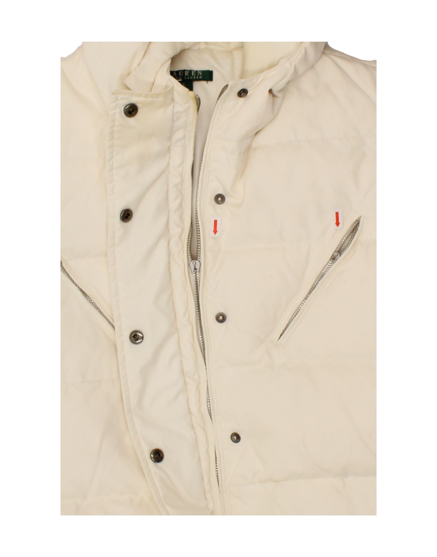 RALPH LAUREN Womens Hooded Padded Jacket UK 16 Large Off White Polyester