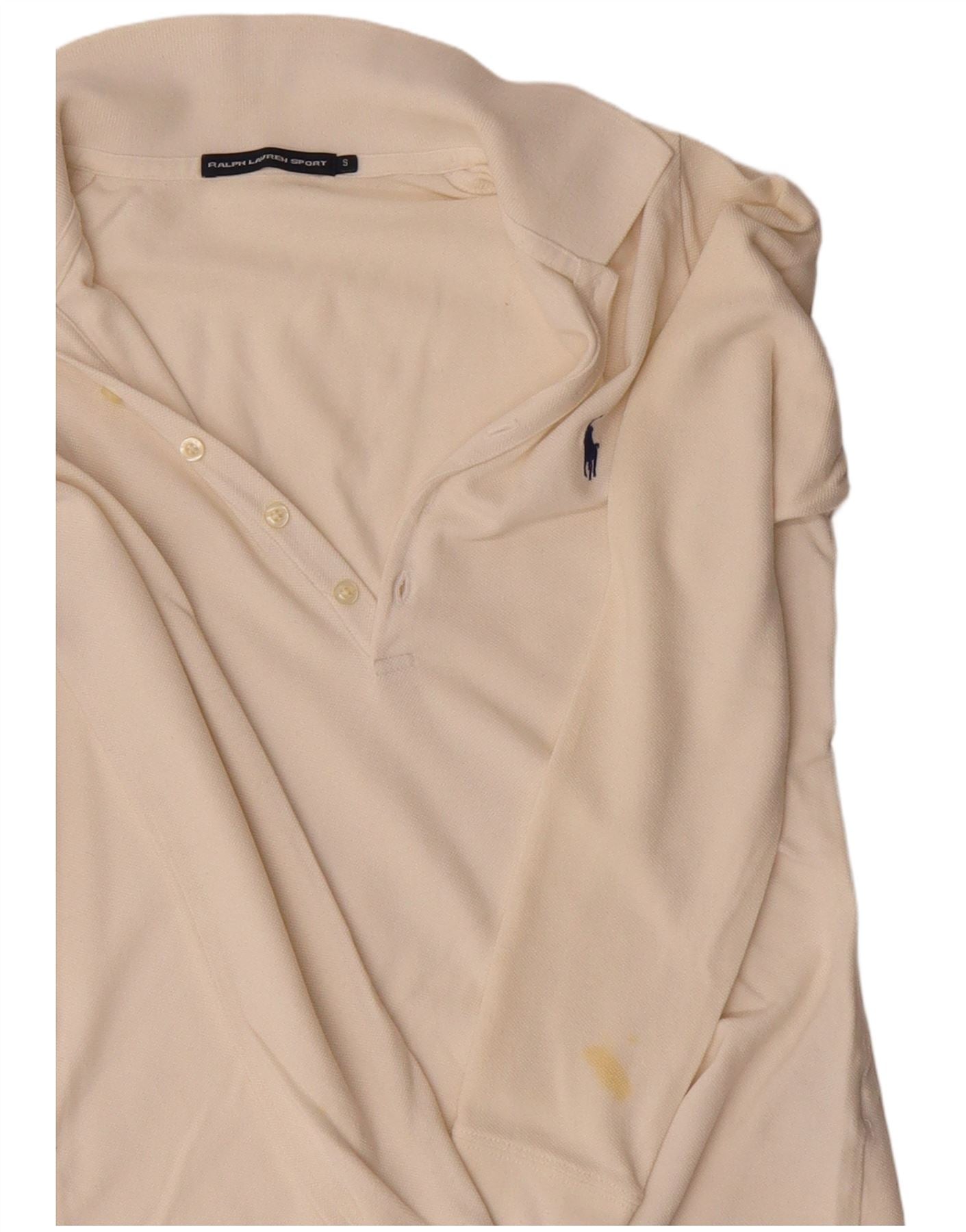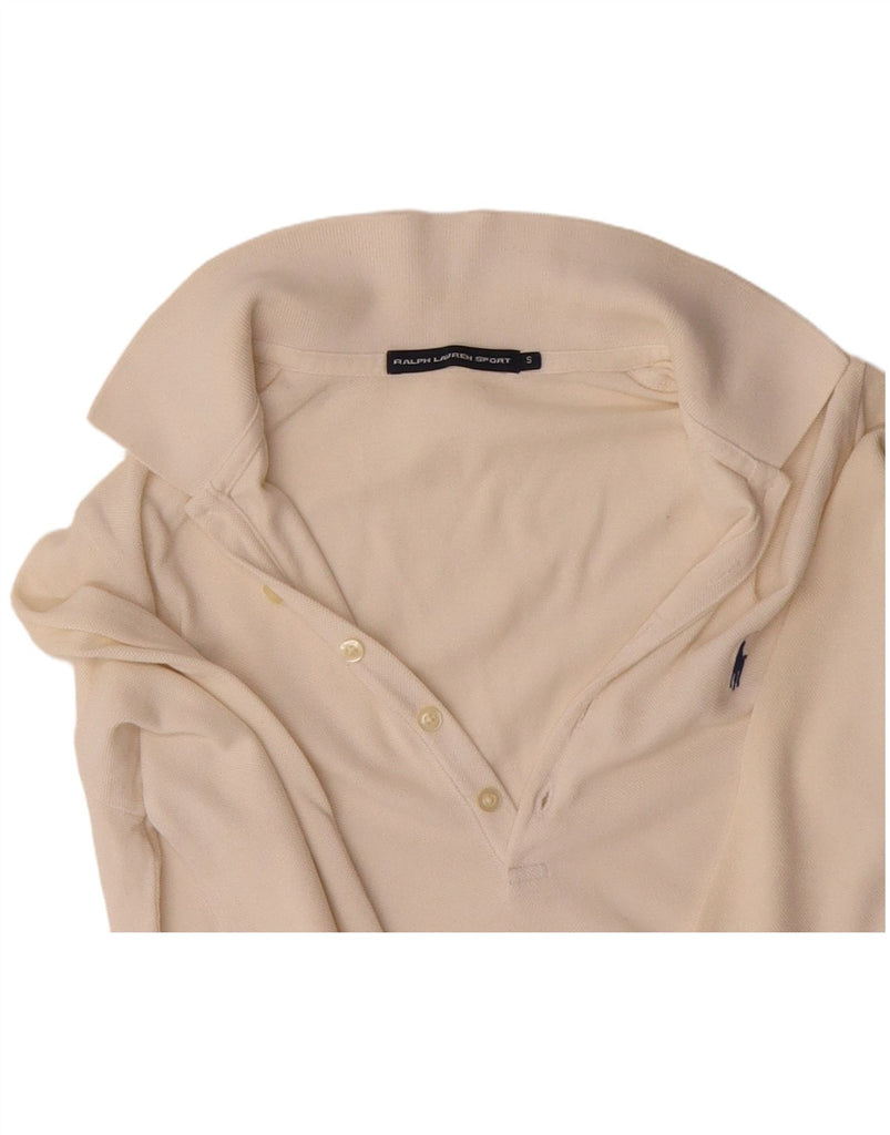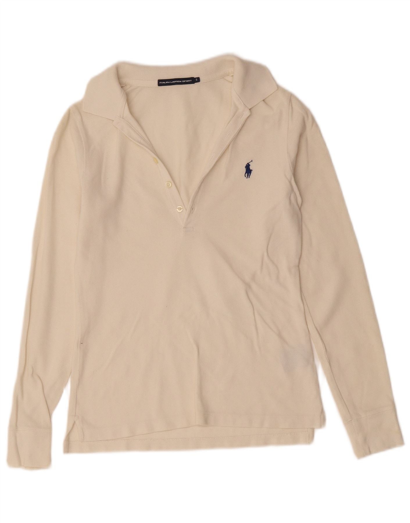 RALPH LAUREN Womens Long Sleeve Polo Shirt UK 10 Small Off White Cotton