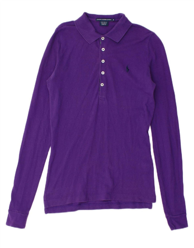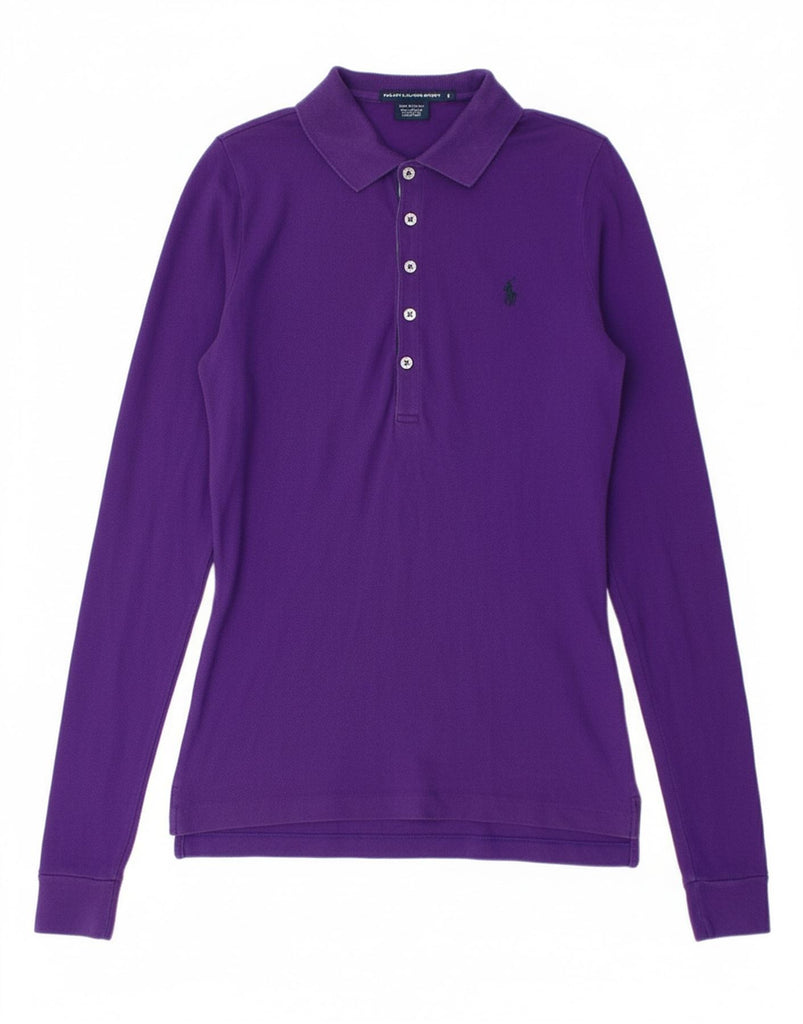 RALPH LAUREN Womens Long Sleeve Polo Shirt UK 10 Small Purple Cotton