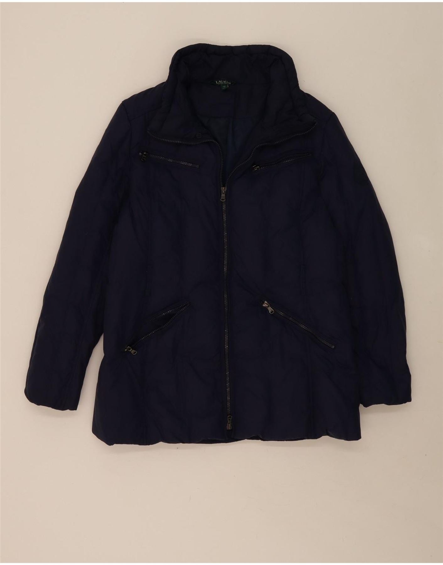 RALPH LAUREN Womens Padded Jacket UK 16 Large Navy Blue Polyester