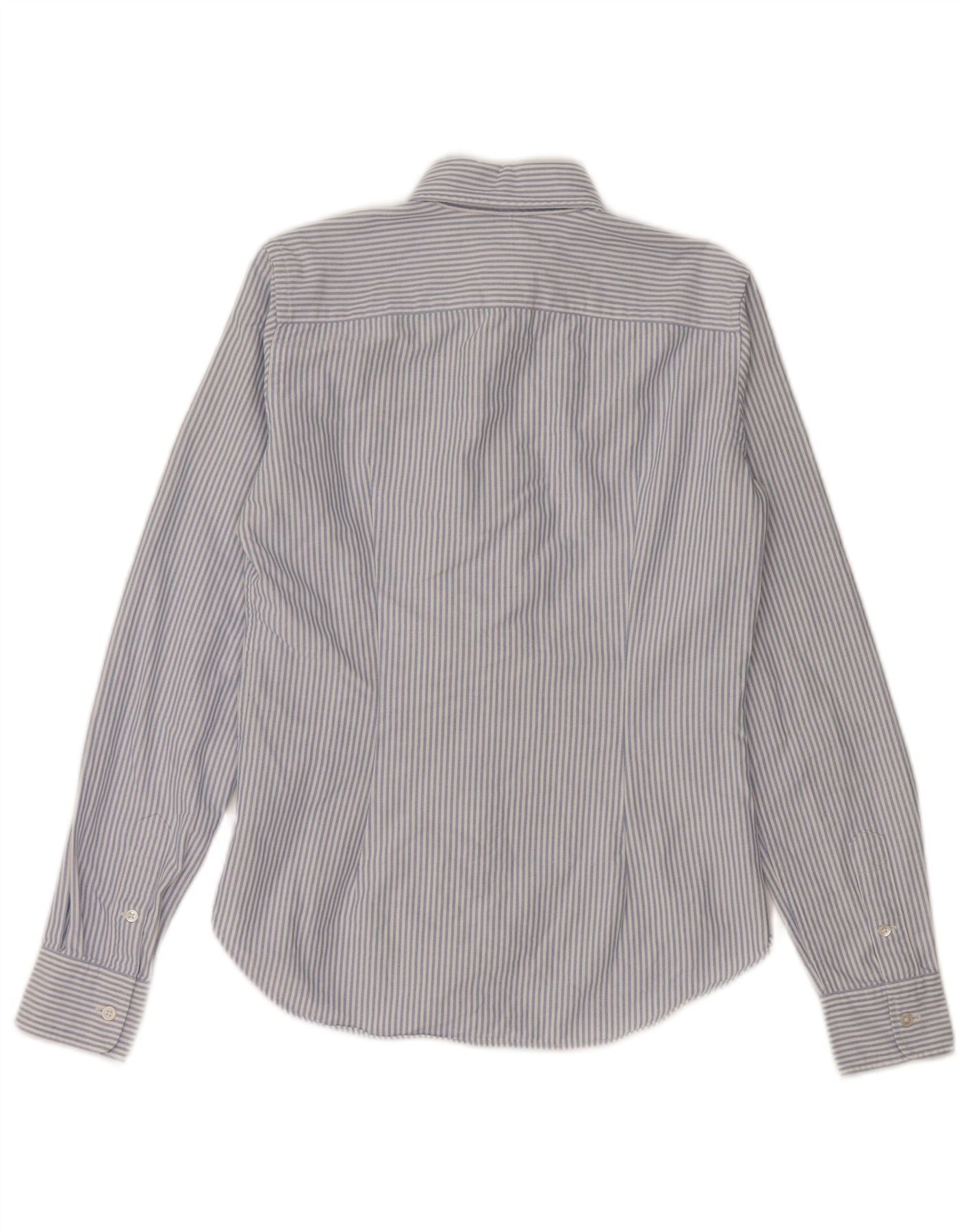 - Descripción de IA: Esta camisa formal para mujer de Ralph Lauren está confeccionada con 100 % algodón tejido. Presenta un patrón de rayas azules y blancas nítidas. El escote con cuello y la parte delantera completa con botones ofrecen un estilo clásico y refinado. Manga larga rematada con puños abotonados. Un logotipo sutil bordado añade detalles característicos. El corte regular garantiza comodidad y una silueta atemporal.