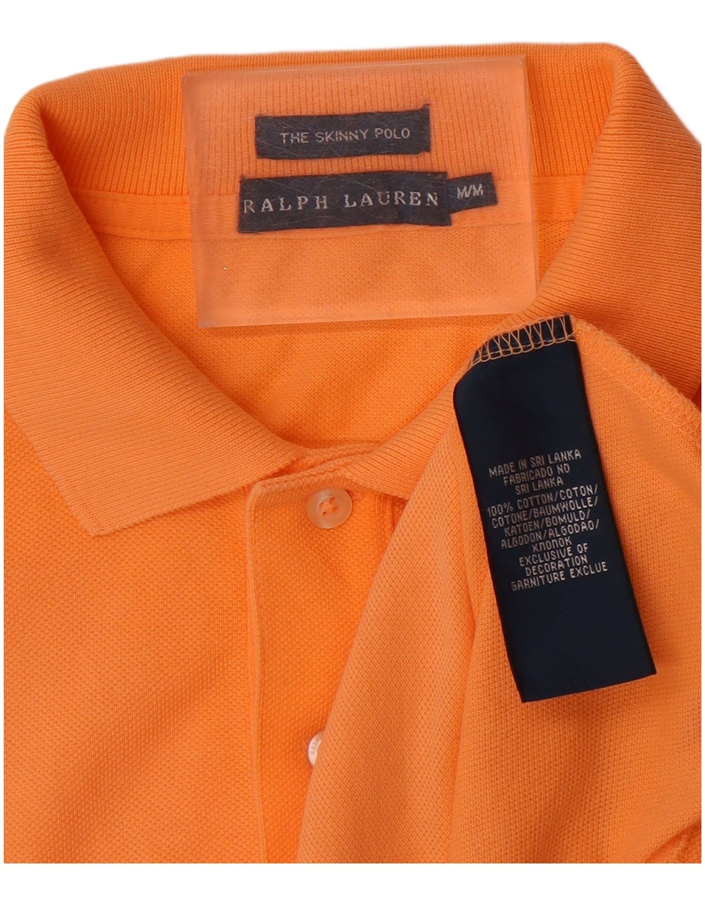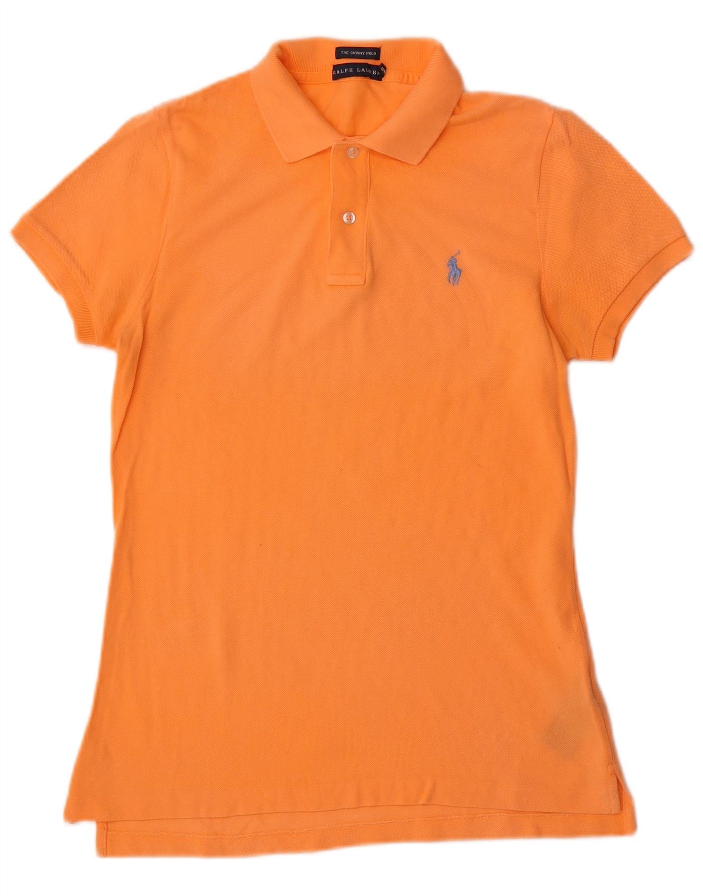 RALPH LAUREN Womens Skinny Polo Shirt UK 12 Medium Orange Cotton