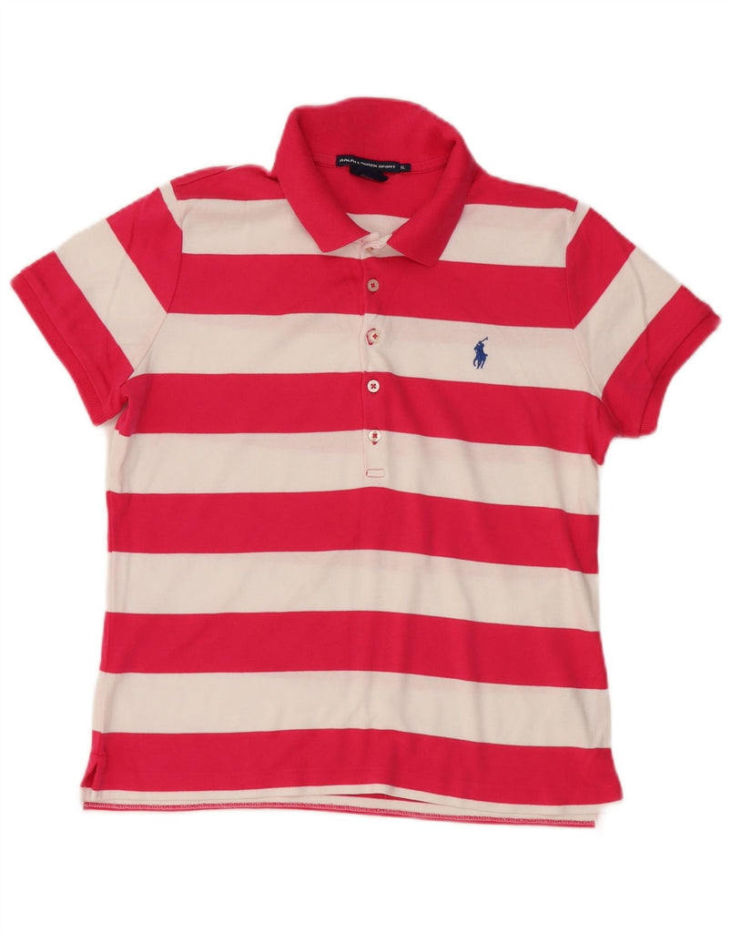 RALPH LAUREN Womens Slim Fit Polo Shirt UK 18 XL Red Striped Cotton