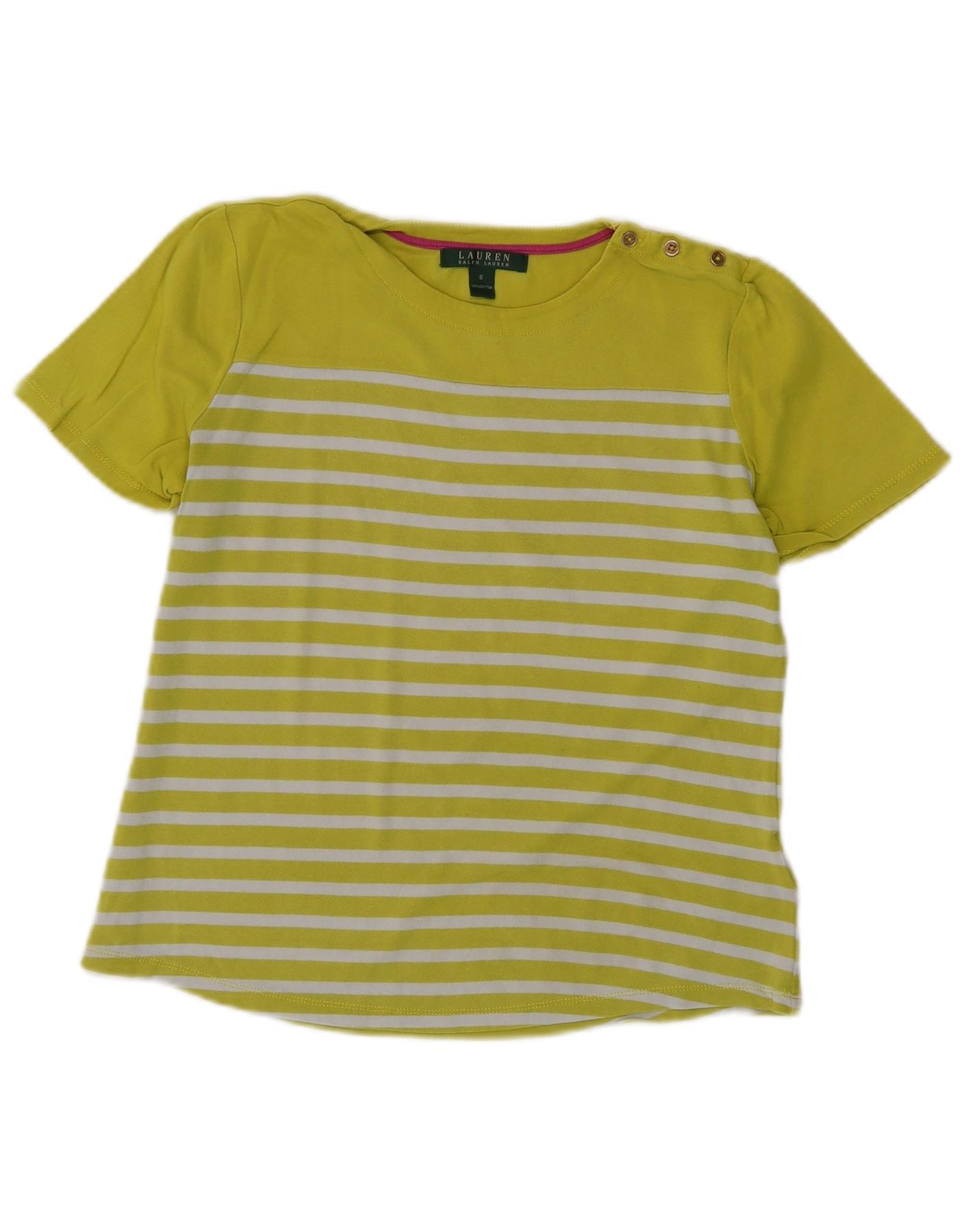 RALPH LAUREN Womens T-Shirt Top UK 10 Small Green Striped Cotton