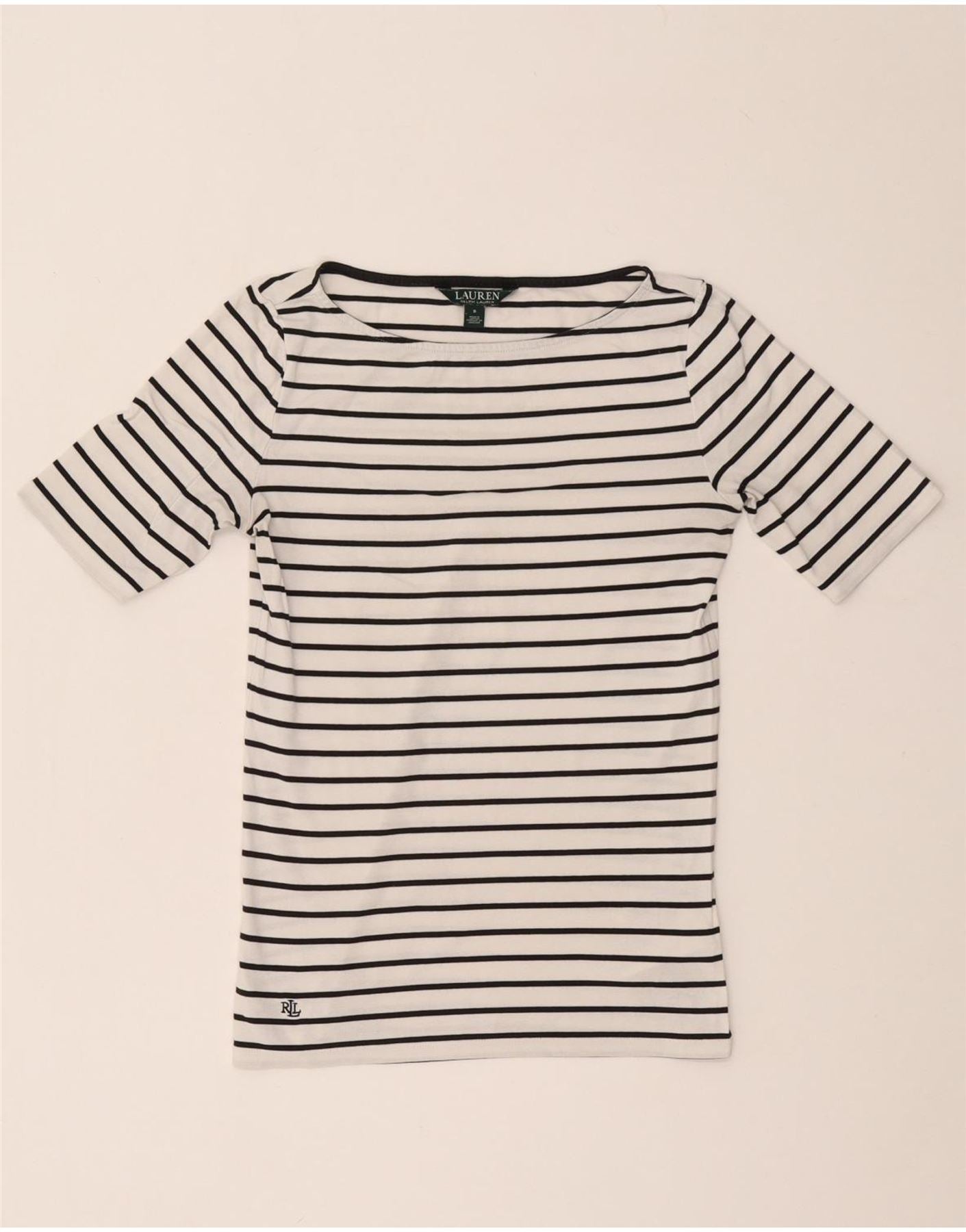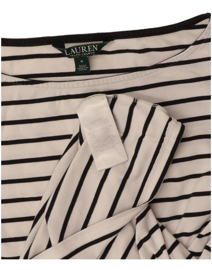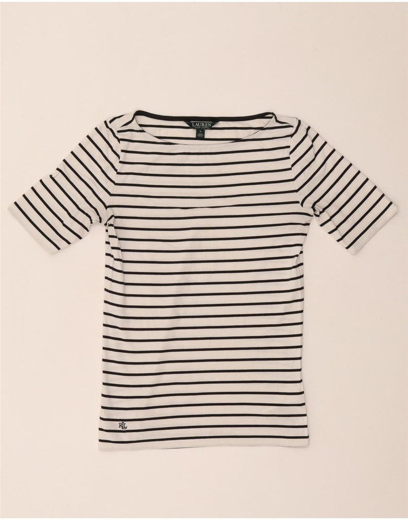 RALPH LAUREN Womens T-Shirt Top UK 10 Small White Striped Cotton