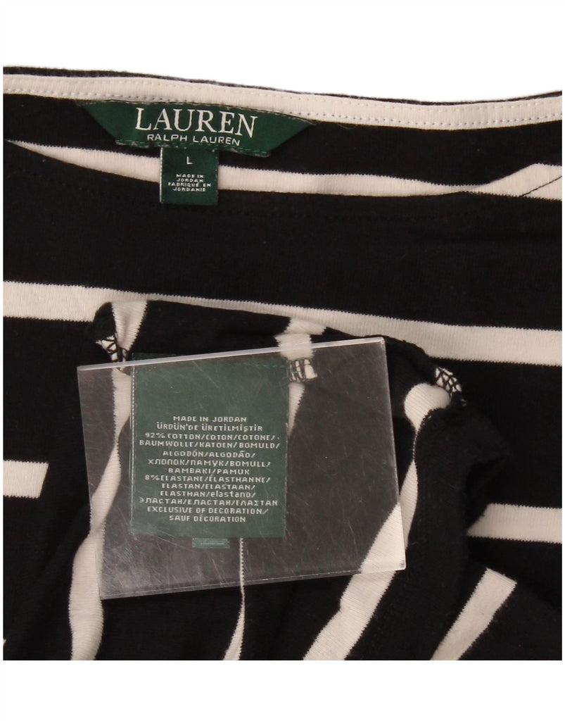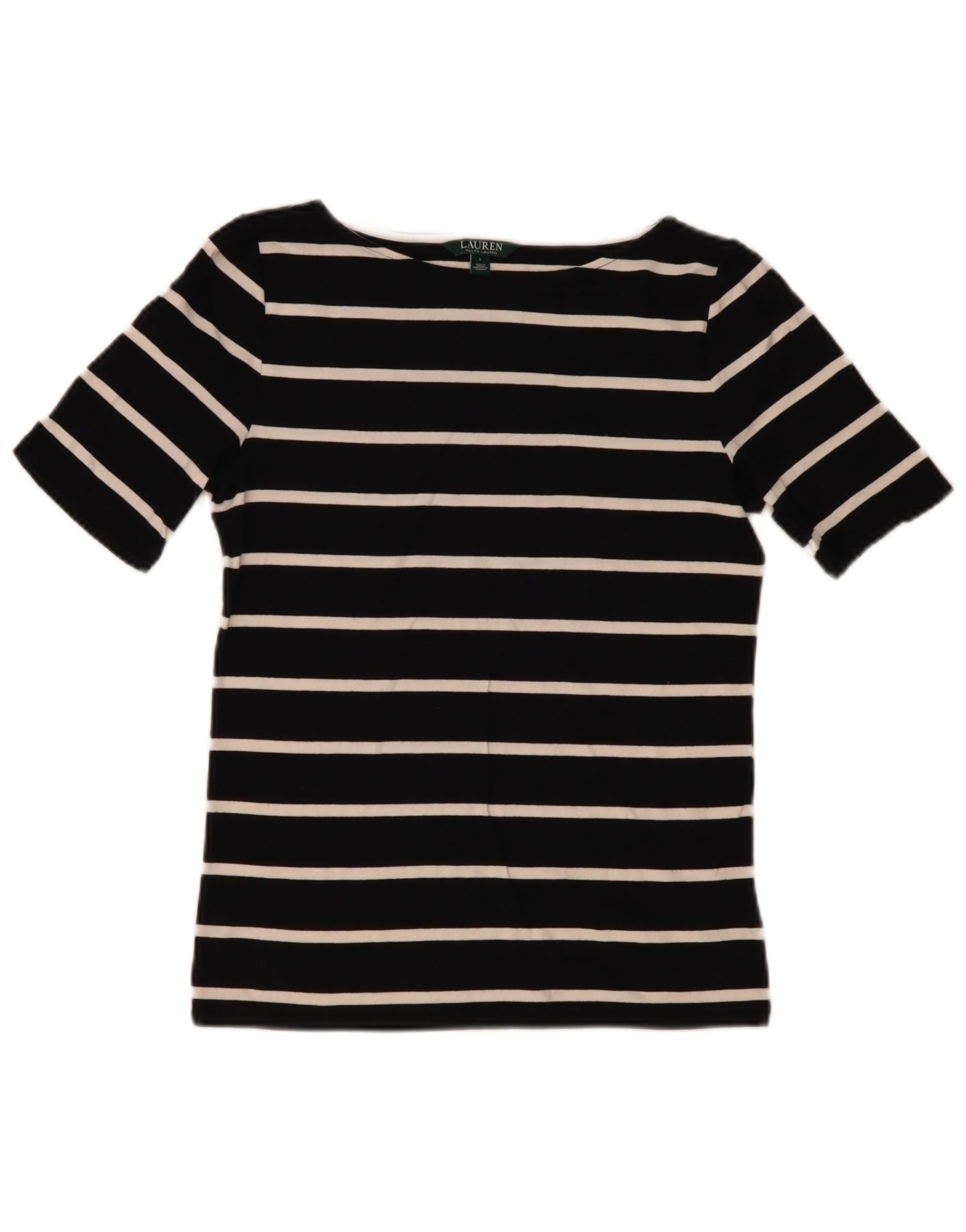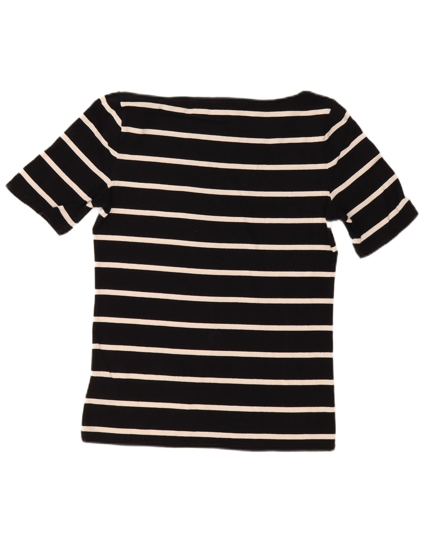 RALPH LAUREN Womens T-Shirt Top UK 14 Large Black Striped Cotton