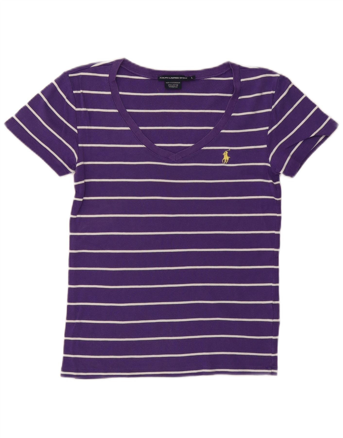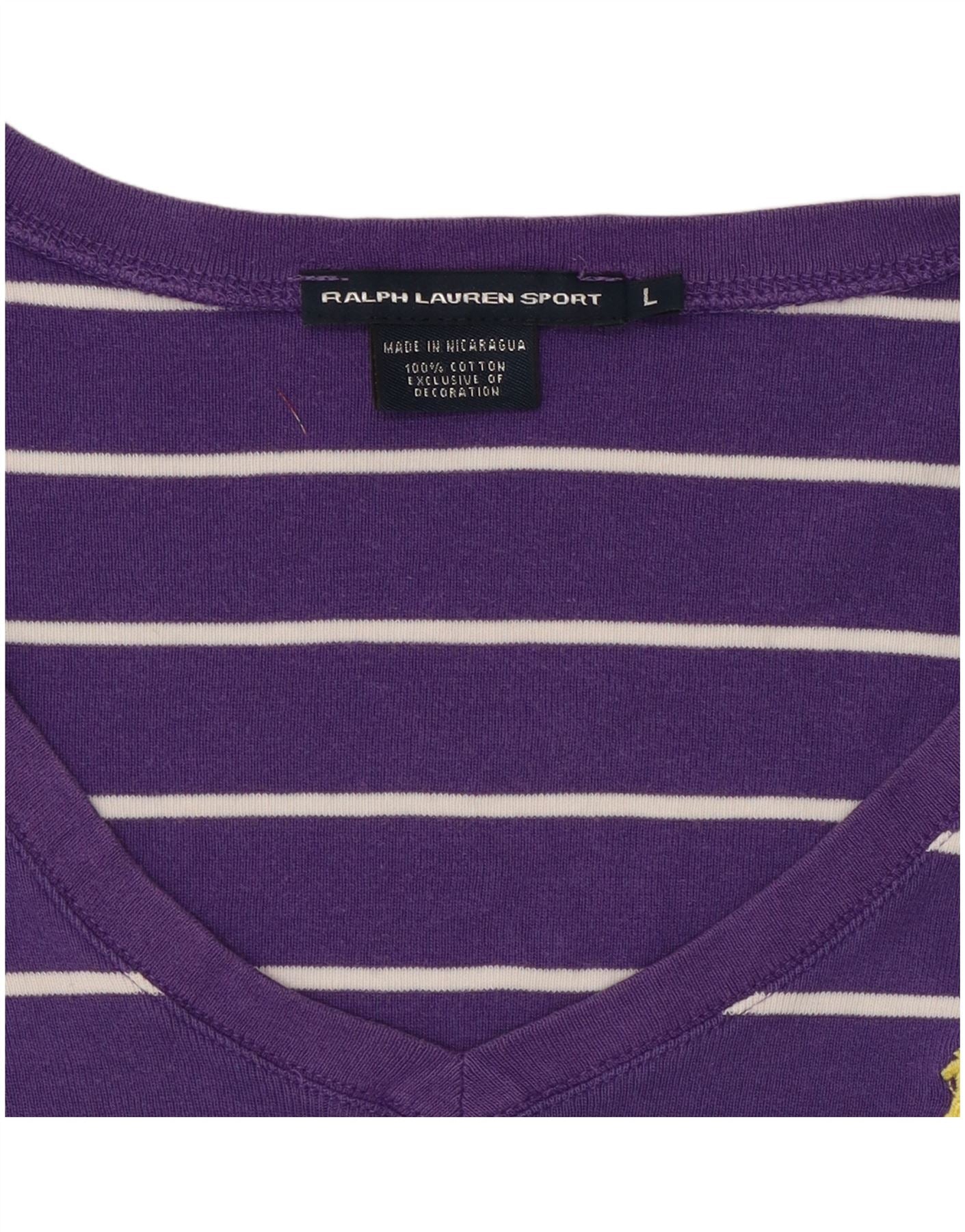 RALPH LAUREN Camiseta para mujer Top UK 40 Grande Algodón a rayas morado