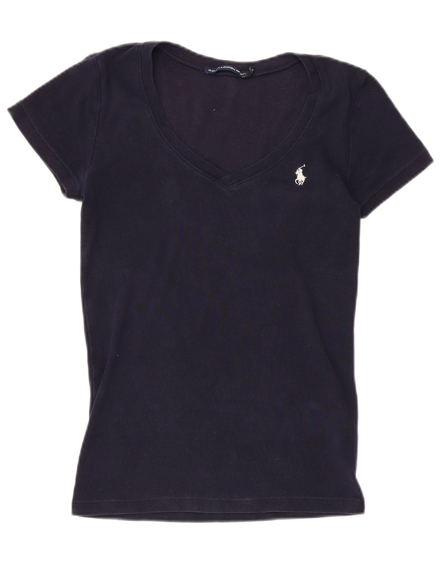 RALPH LAUREN Camiseta para mujer Top UK 8 Small Azul marino Algodón