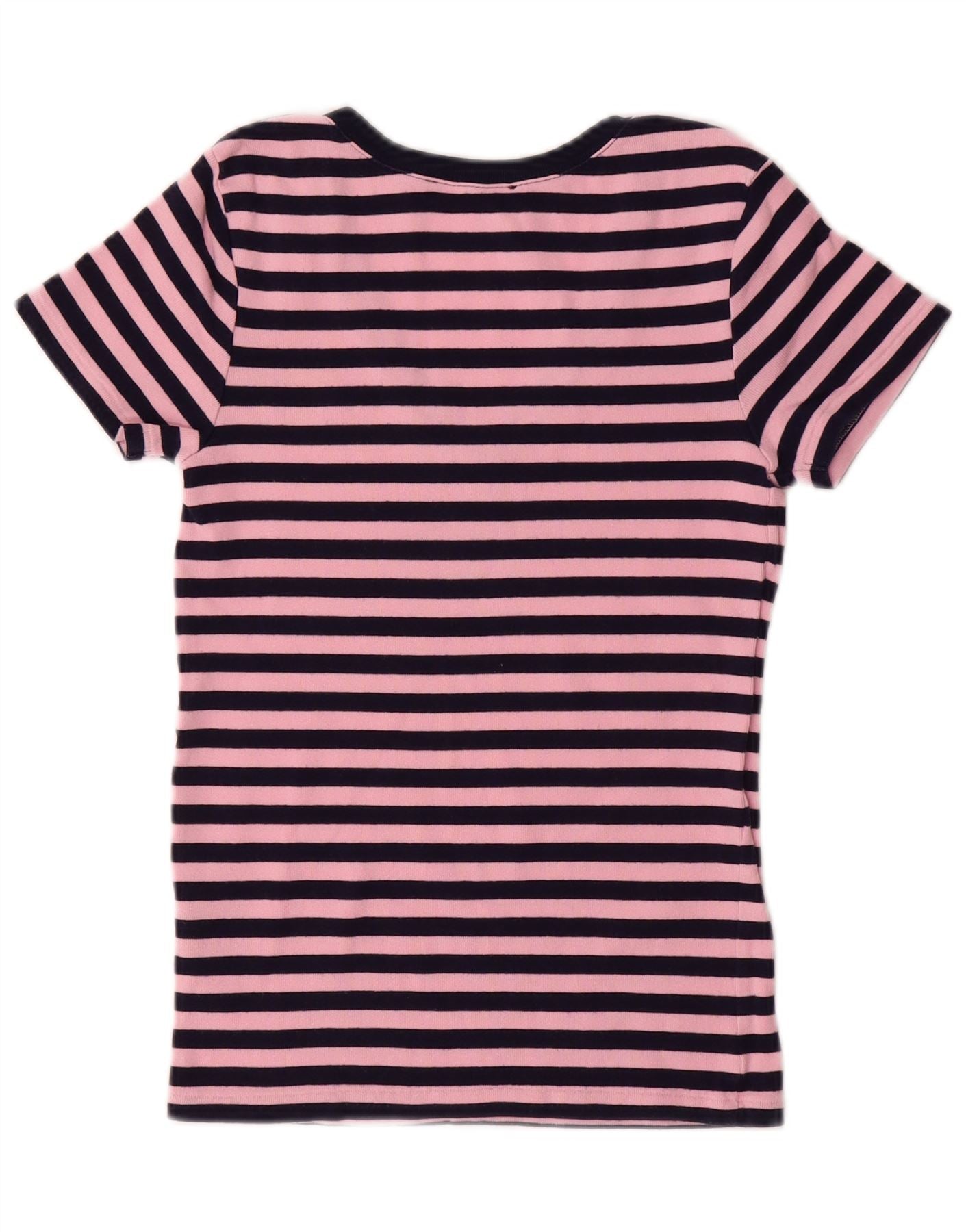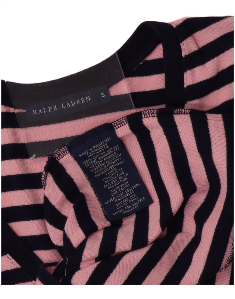 RALPH LAUREN Womens T-Shirt Top UK 8 Small Pink Striped Cotton