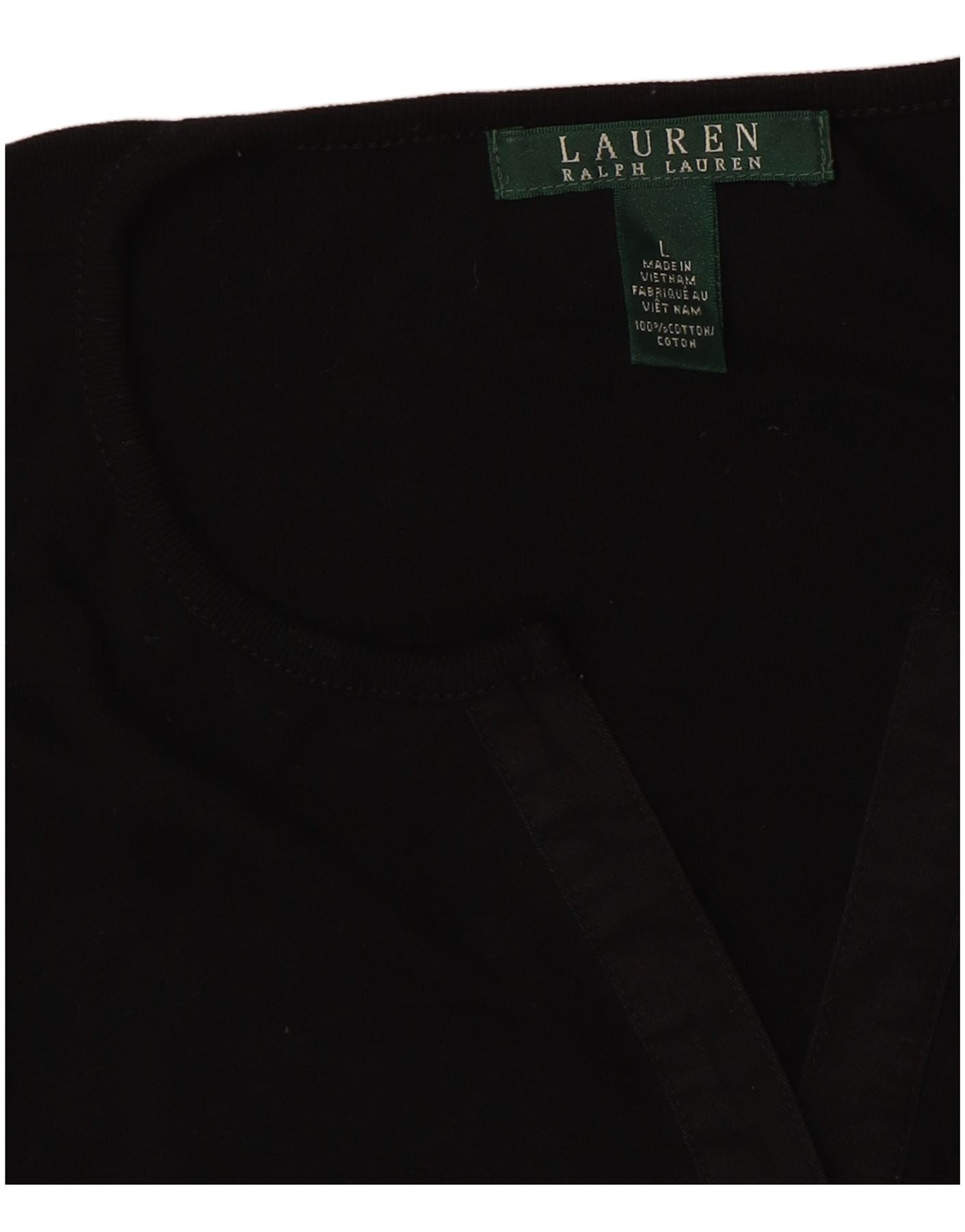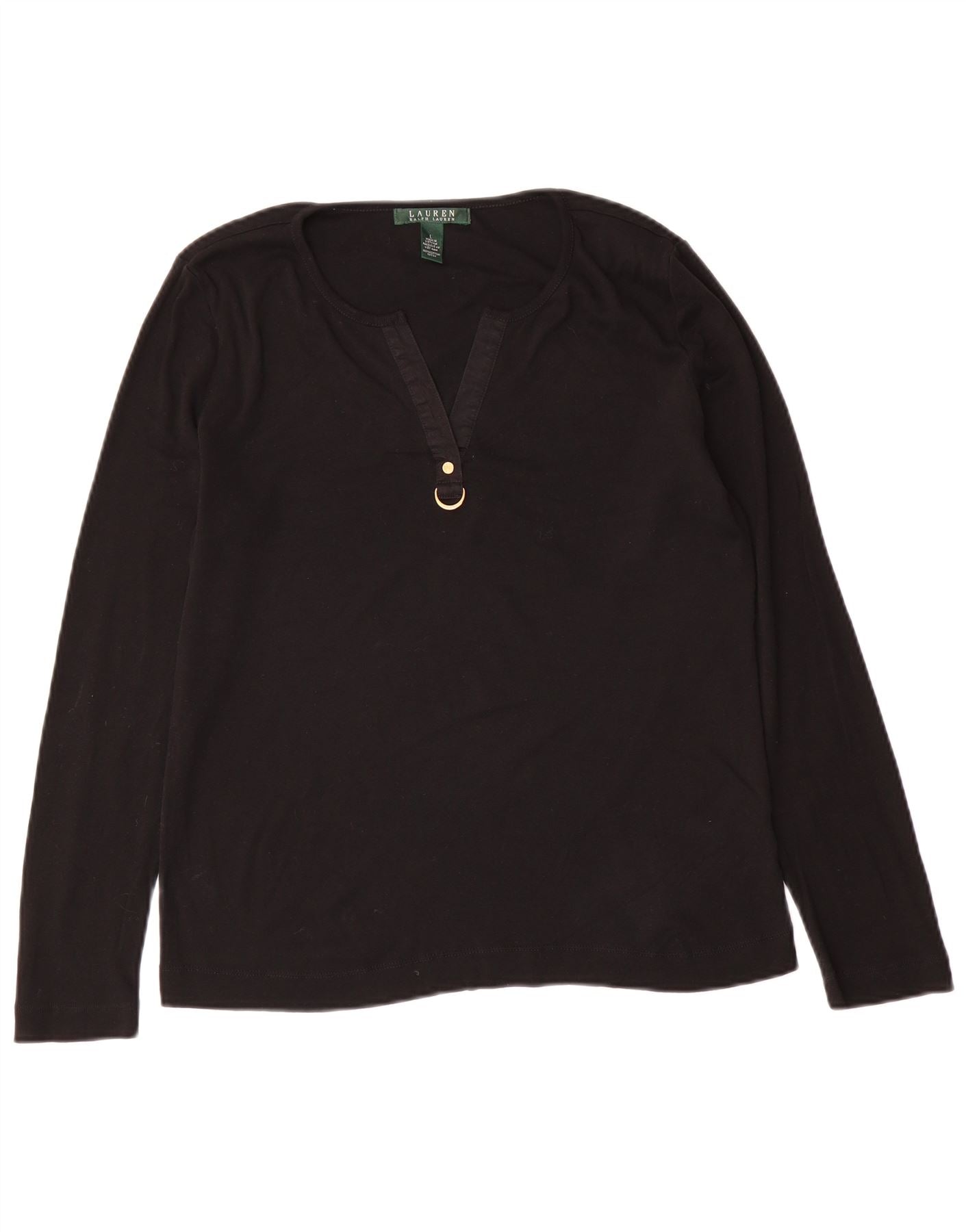 RALPH LAUREN Camiseta de manga larga para mujer UK 16 Grande Algodón negro