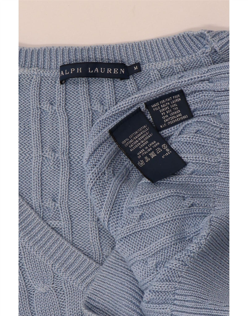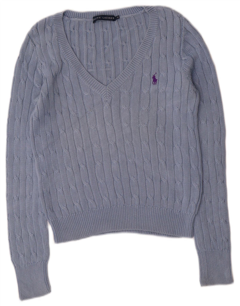 RALPH LAUREN Jersey con cuello en V para mujer UK 12 Algodón azul medio