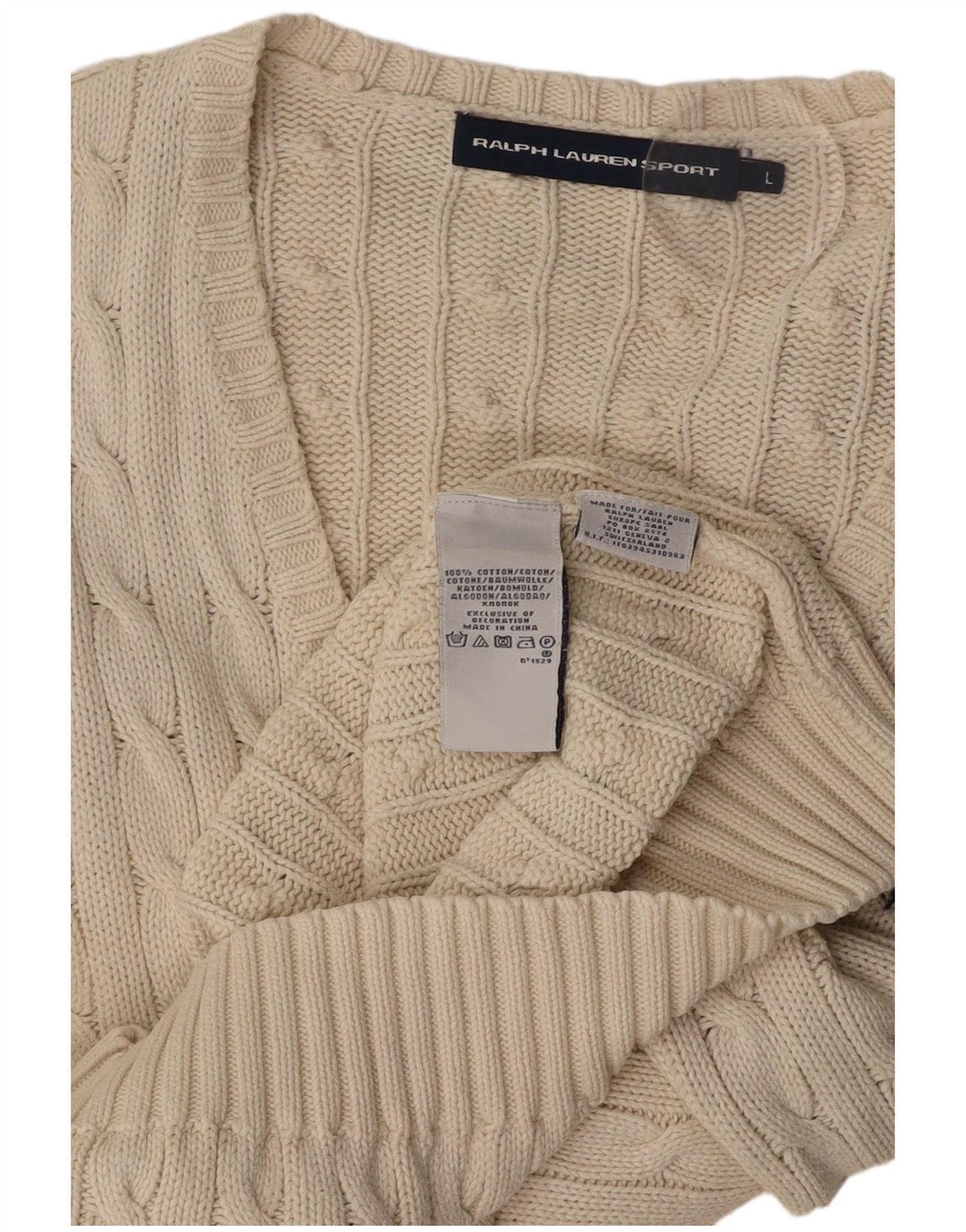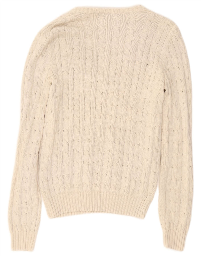 RALPH LAUREN Womens V-Neck Jumper Sweater UK 14 Large White Cotton