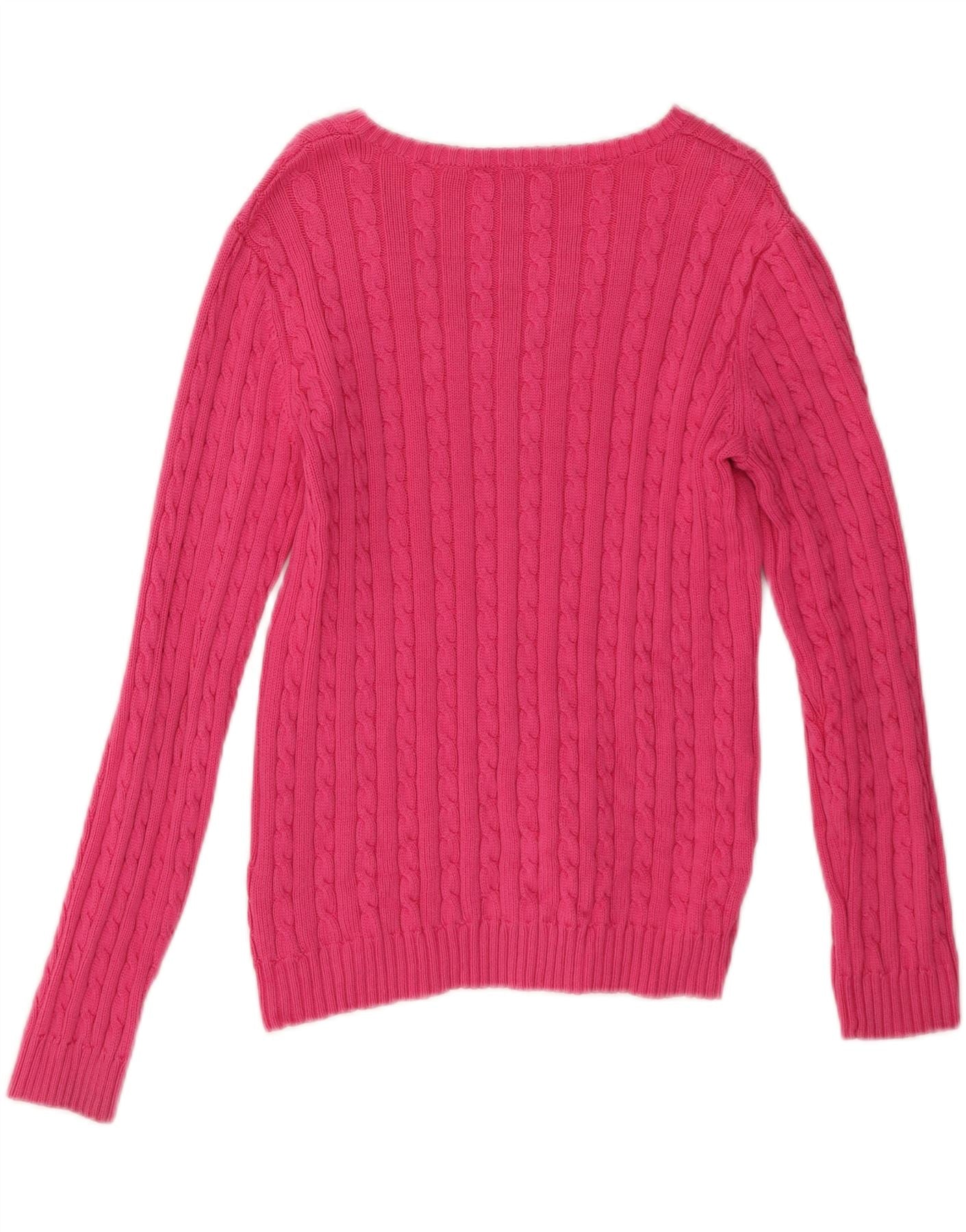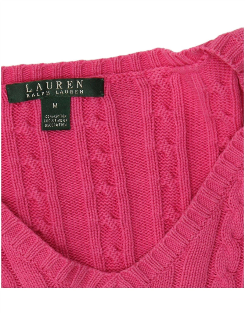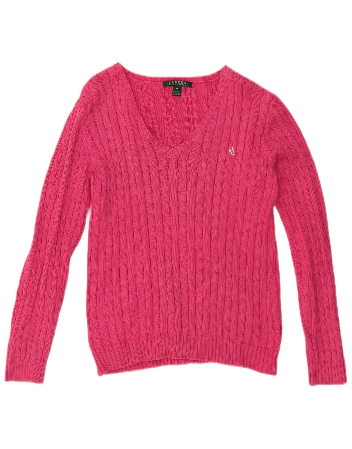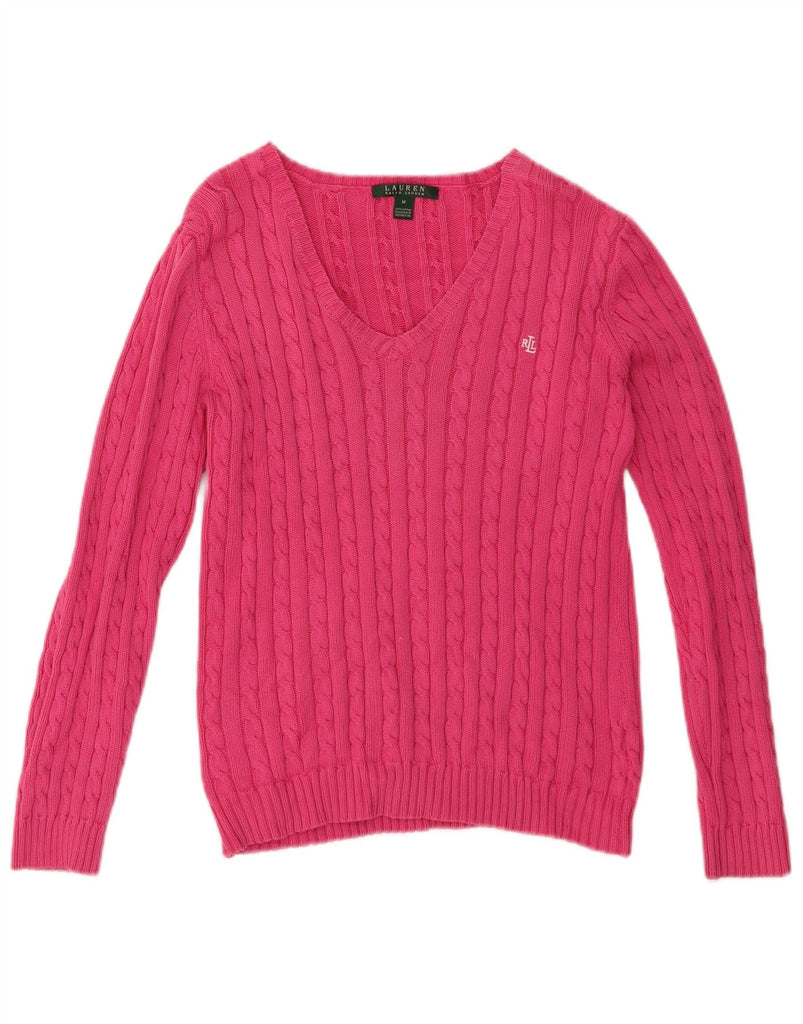 RALPH LAUREN Womens V-Neck Jumper Sweater UK 14 Medium Pink Cotton