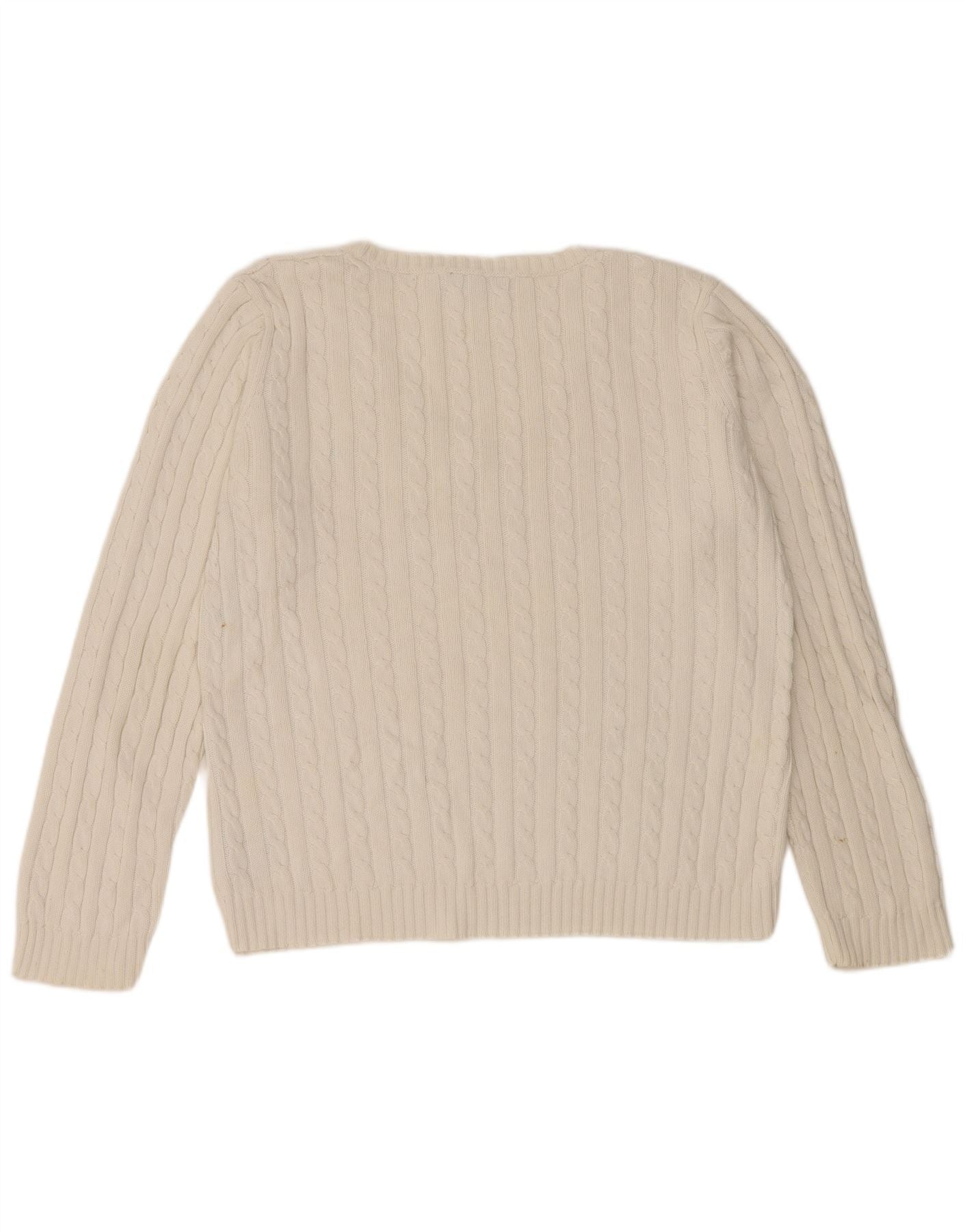 RALPH LAUREN Womens V-Neck Jumper Sweater UK 16 Large White Cotton