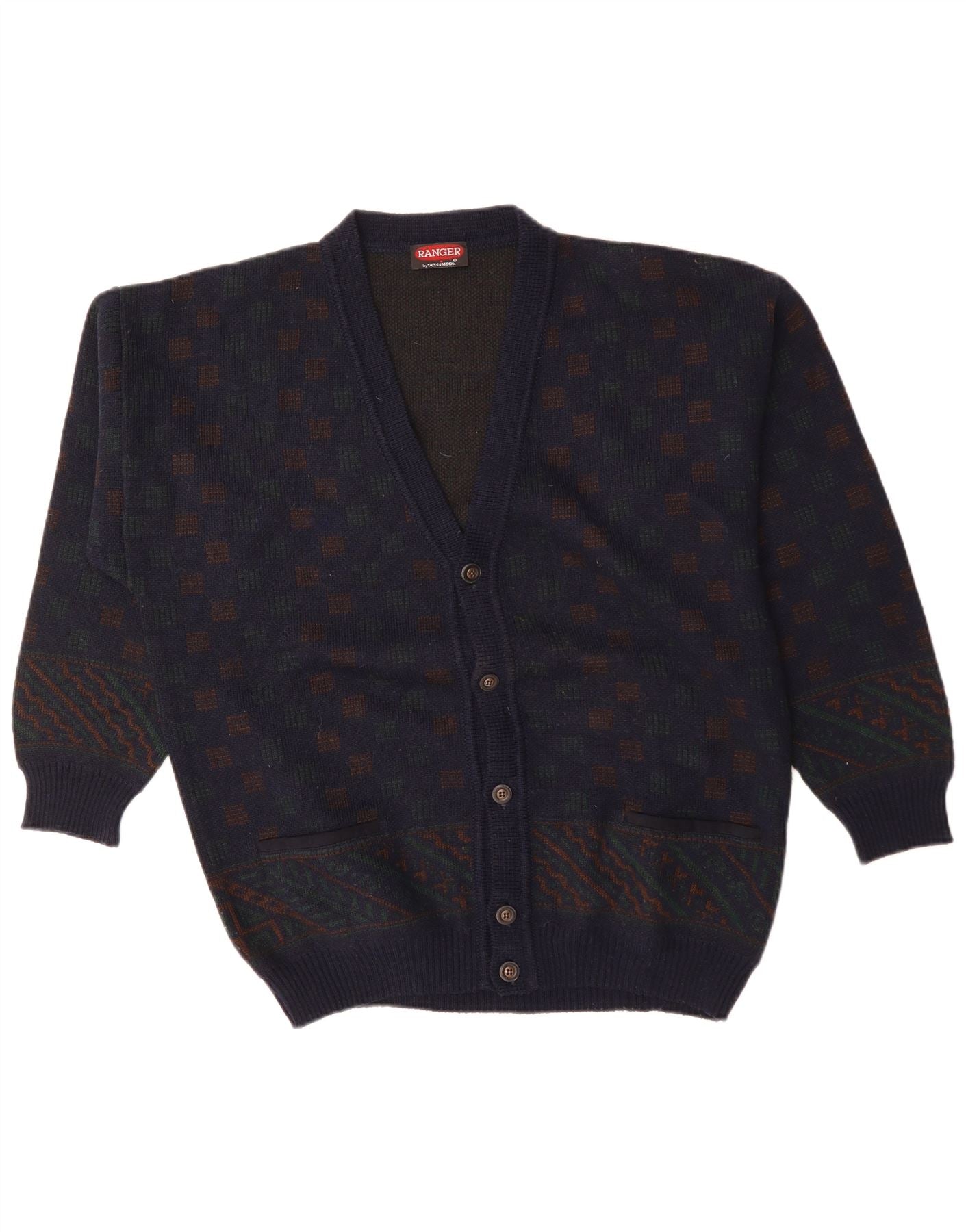 Ranger Mens Cardigan Suéter XL Azul Marino Geométrico