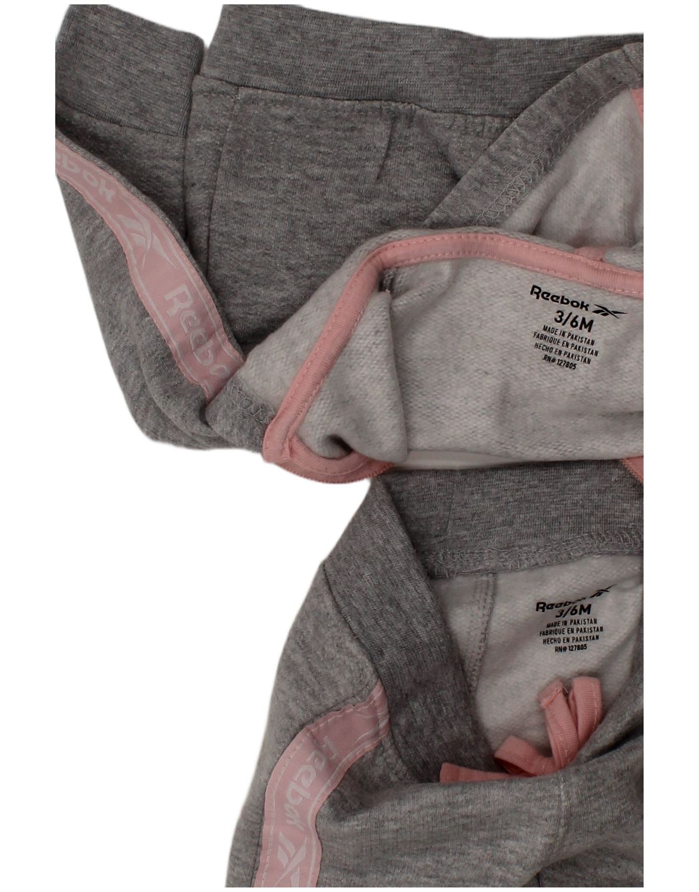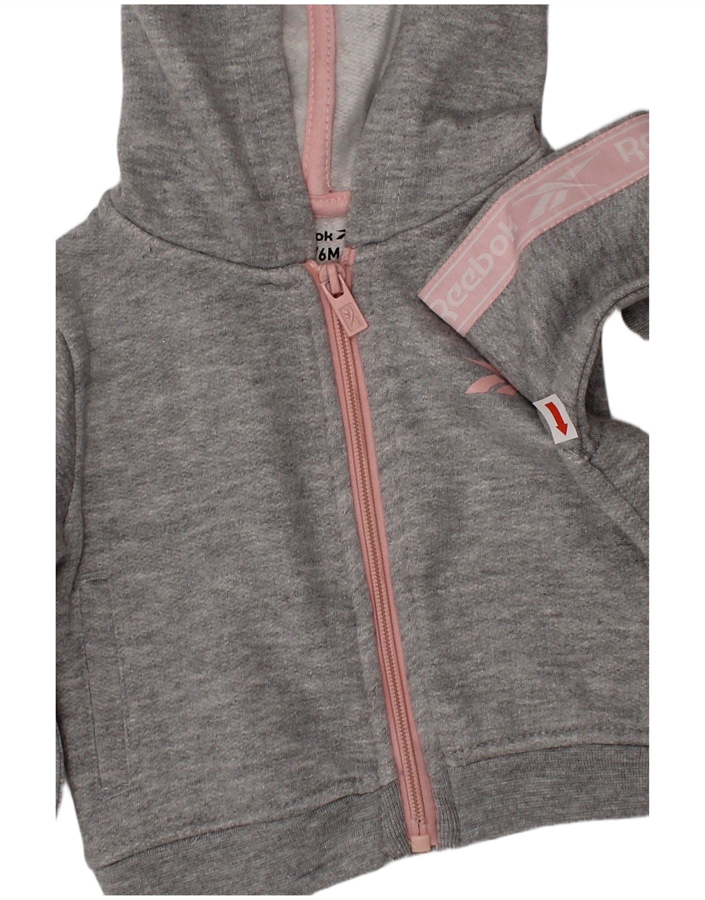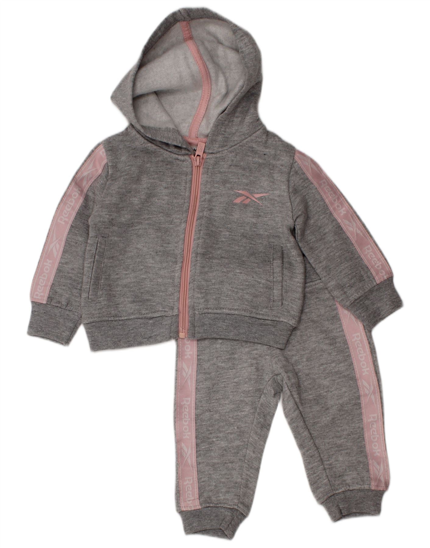 REEBOK Baby Girls Graphic Hooded Full Tracksuit 3-6 Months Grey Cotton