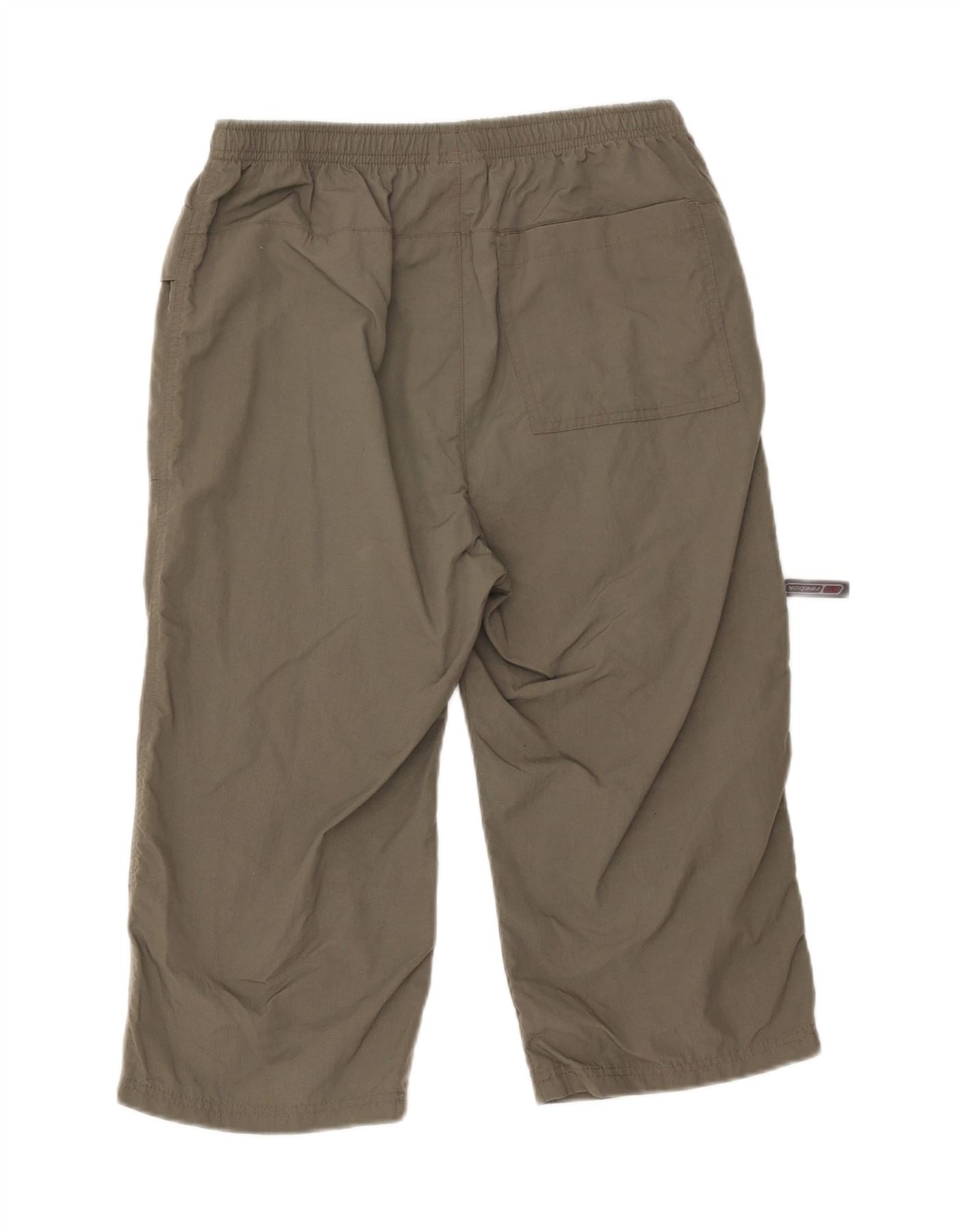 - AI Description: These Reebok men’s cargo shorts are crafted from durable woven fabric in a versatile green hue. Their regular fit and elasticated drawstring waist ensure comfortable wear. Multiple pockets enhance practicality. Ideal for sports and casual activities, these shorts offer a relaxed fit and functional design.