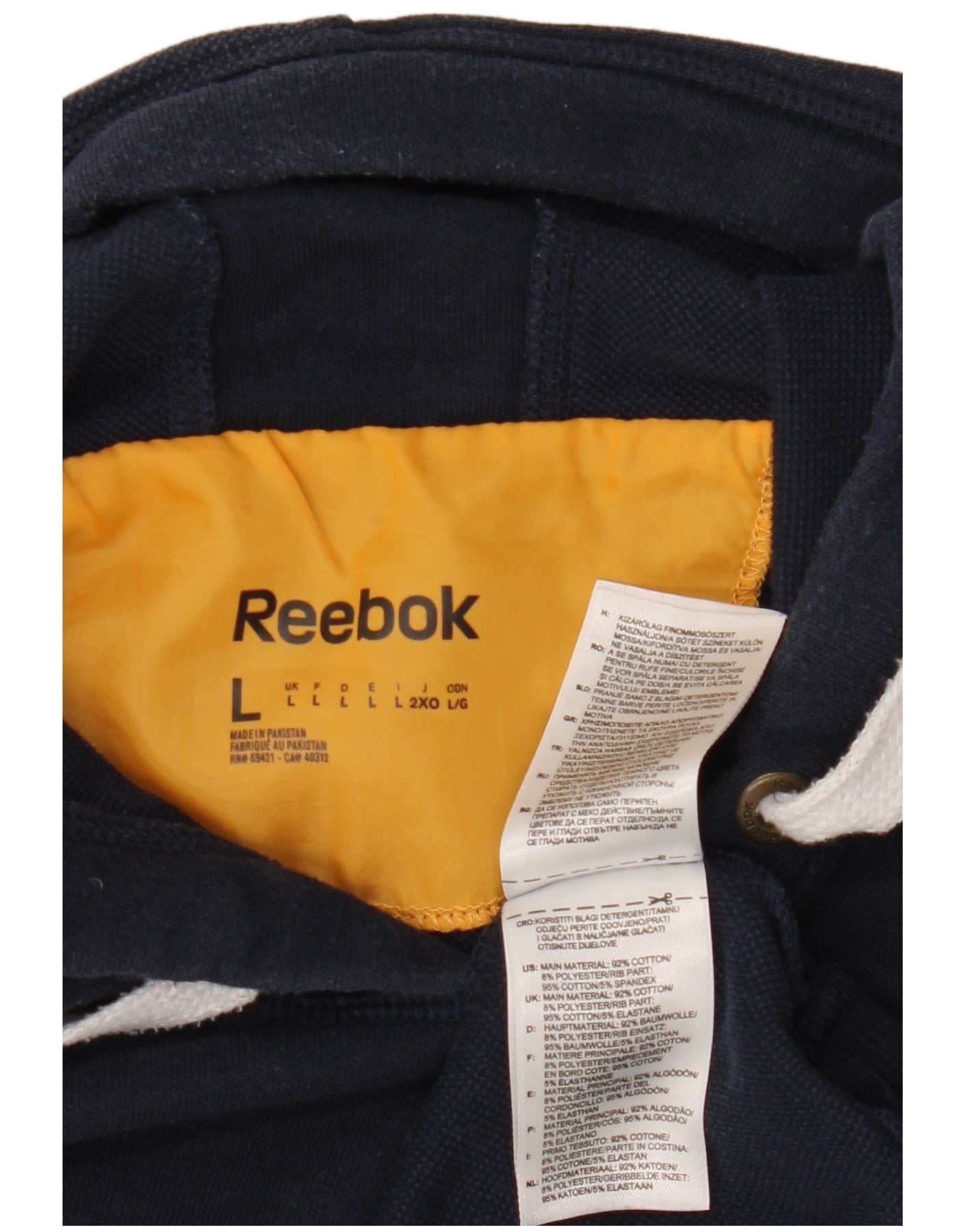 REEBOK Jersey con capucha gráfica para hombre, tamaño grande, algodón azul marino