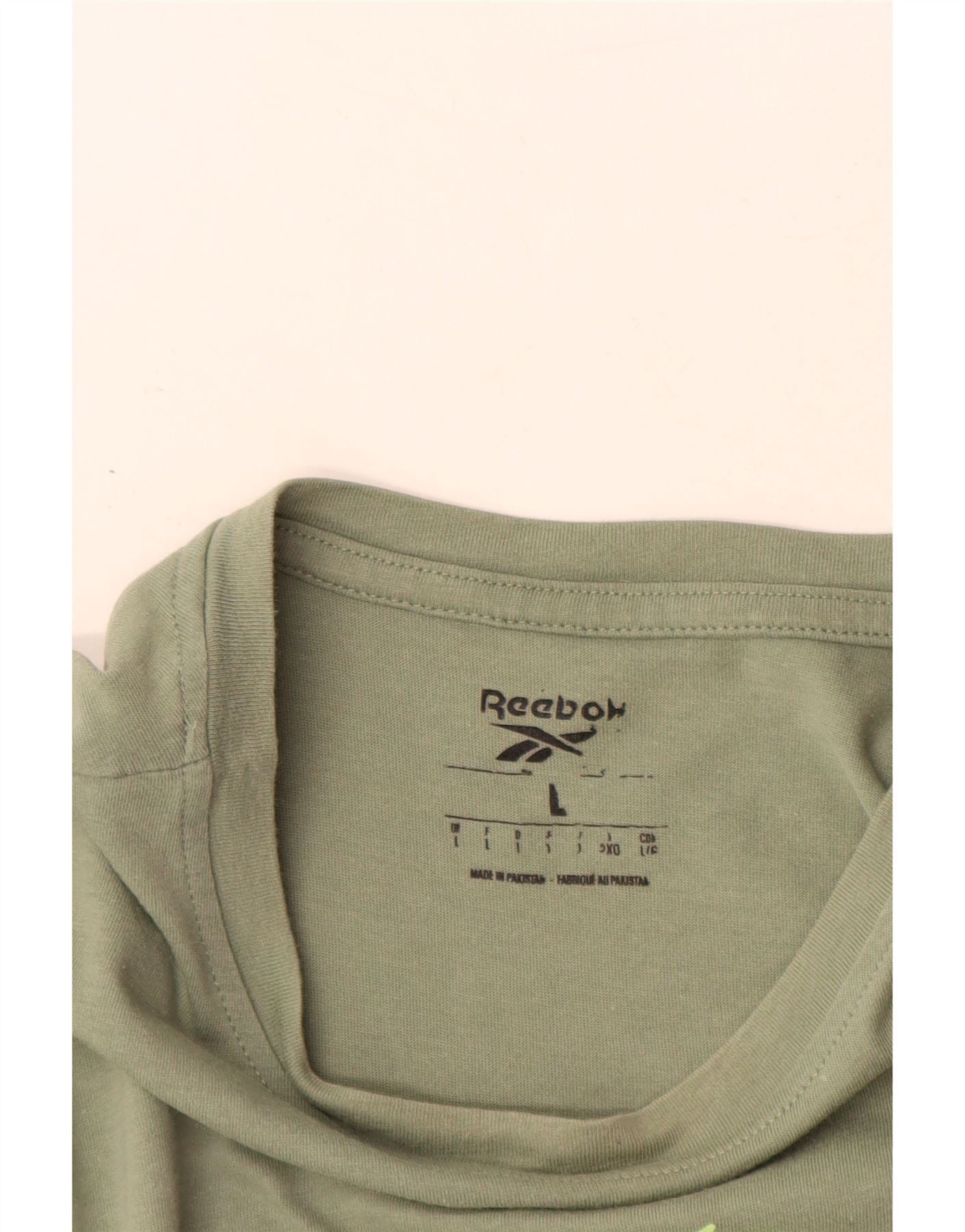 Reebok Camiseta gráfica para hombre Top grande de algodón verde