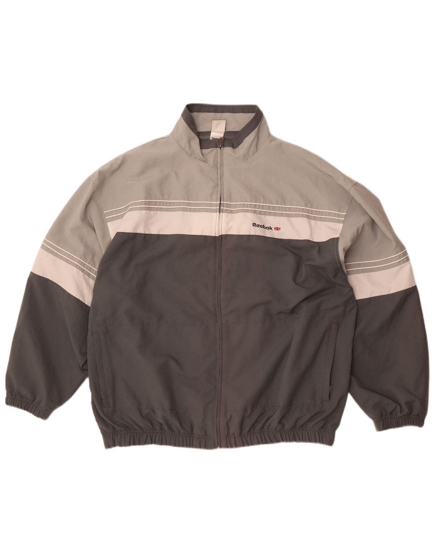Home > reebok > de los hombres > Reebok - Chaqueta de chándal con gráfico para hombre, poliéster color block, color gris grande