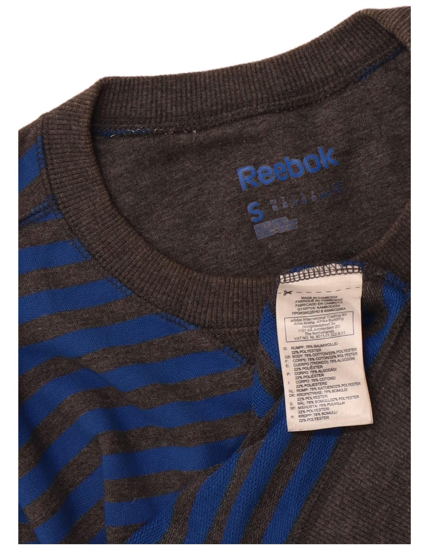 REEBOK Hombre Sudadera Jumper Small Azul Rayas Algodón