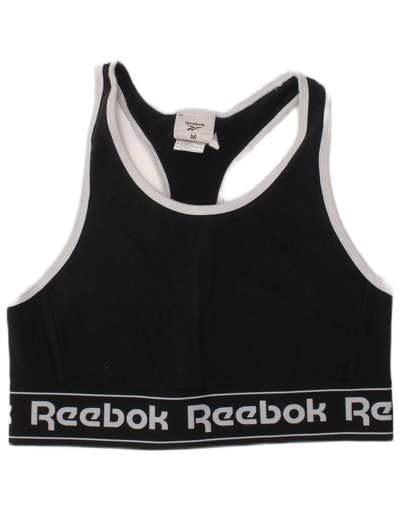 REEBOK Womens Sport Bra Graphic Vest Top UK 12/14 Medium Black Sports