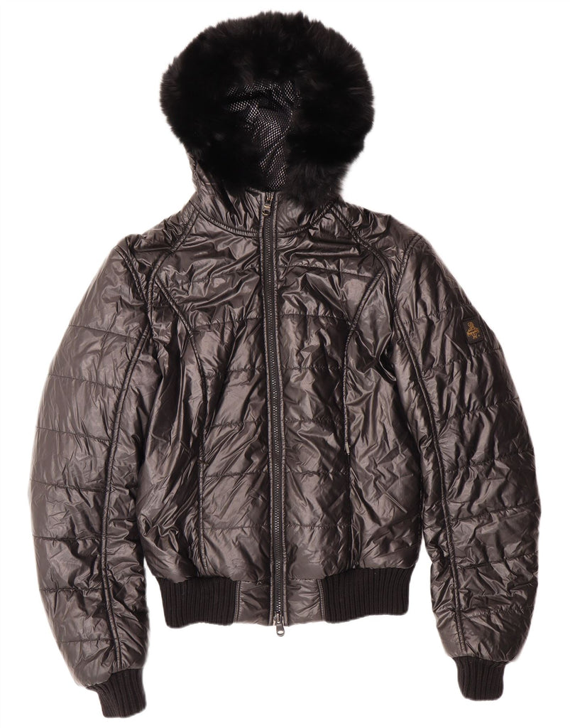 REFRIGIWEAR Womens Hooded Padded Jacket UK 12 Medium Black Polyurethane