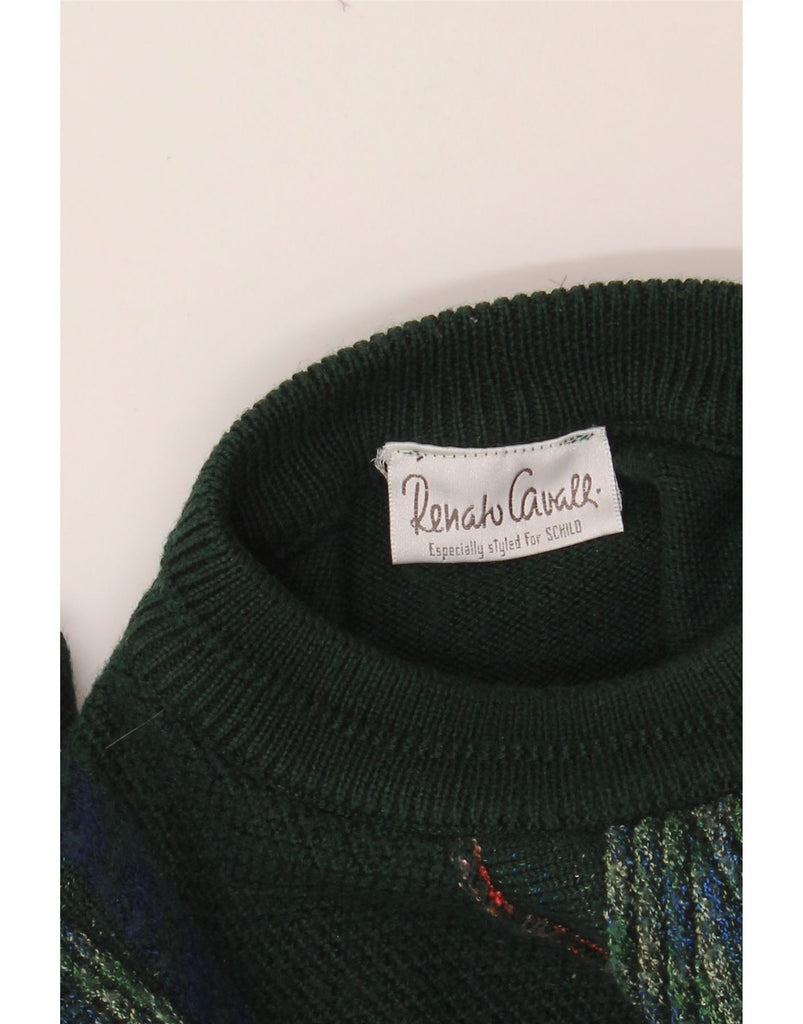 RENATO CAVALLI Mens Crew Neck Jumper Sweater Medium Green Argyle/Diamond