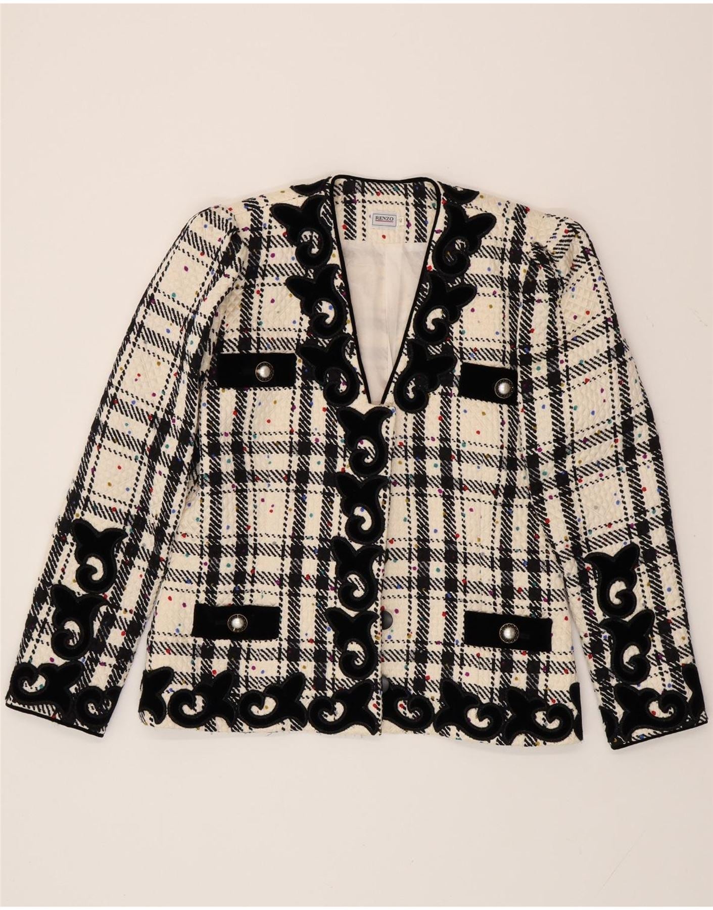 RENZO Chaqueta tipo blazer extragrande para mujer IT 40 Small Off White Check