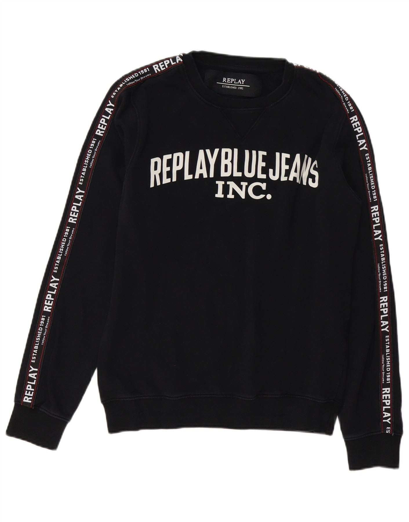 REPLAY Hombre Sudadera Estampada Jumper Medium Negro Algodón