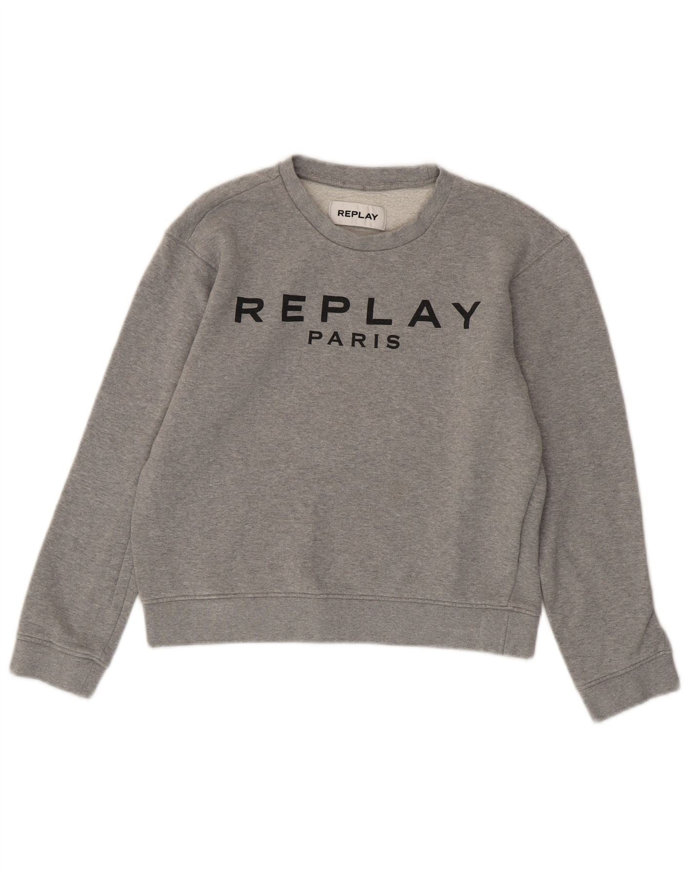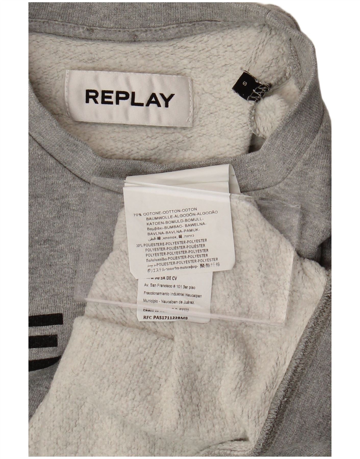 REPLAY Mujer Paris Crop Graphic Sudadera Jumper UK 10 Small Gris Algodón