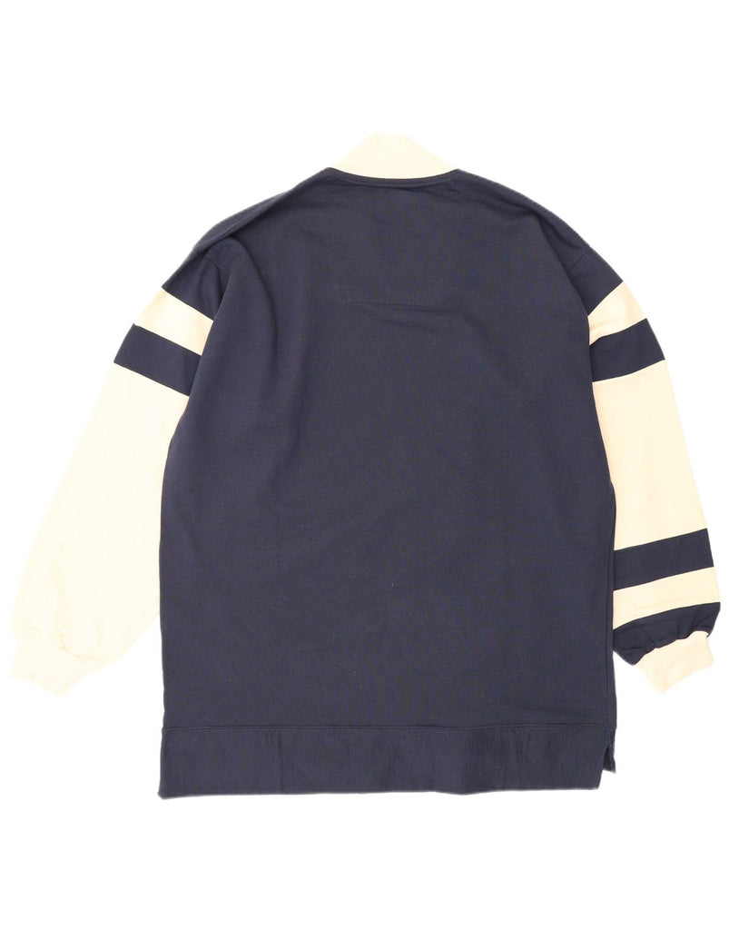 RIFLE Mens Graphic Sweatshirt Jumper Large Navy Blue Colourblock Cotton