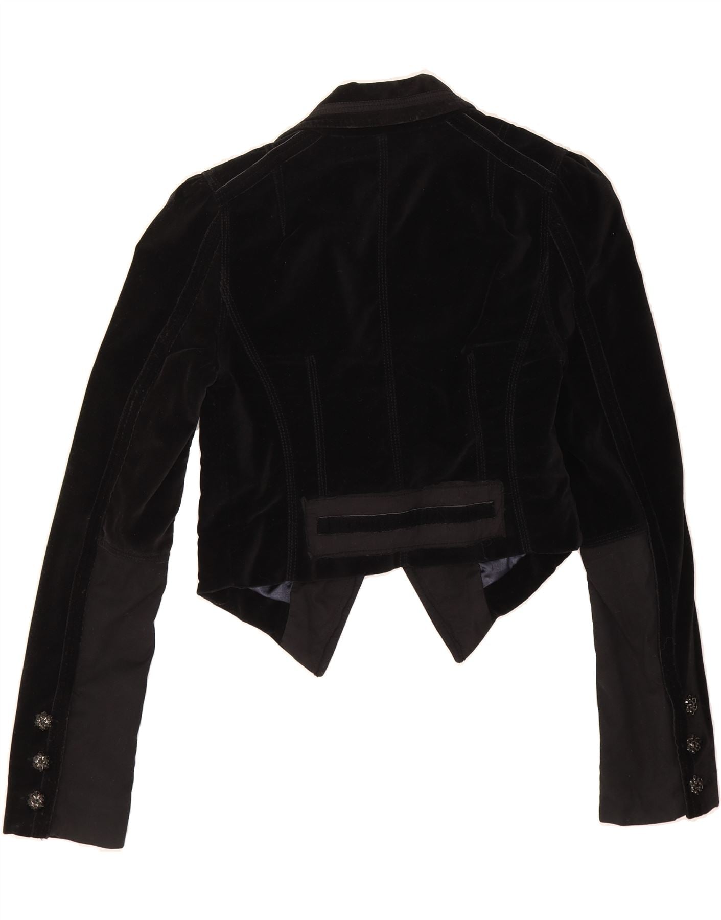 RIVER ISLAND Womens Crop 1 Button Blazer Jacket UK 10 Small Black Cotton