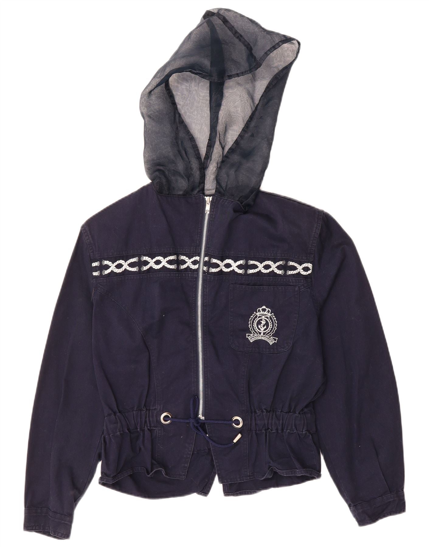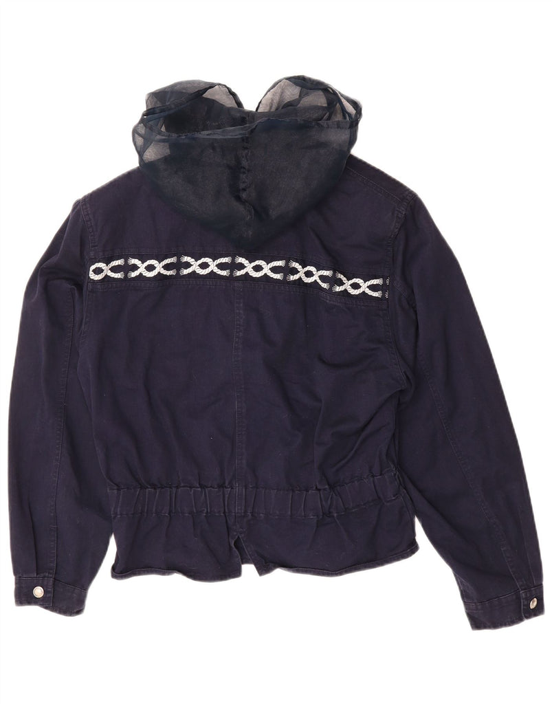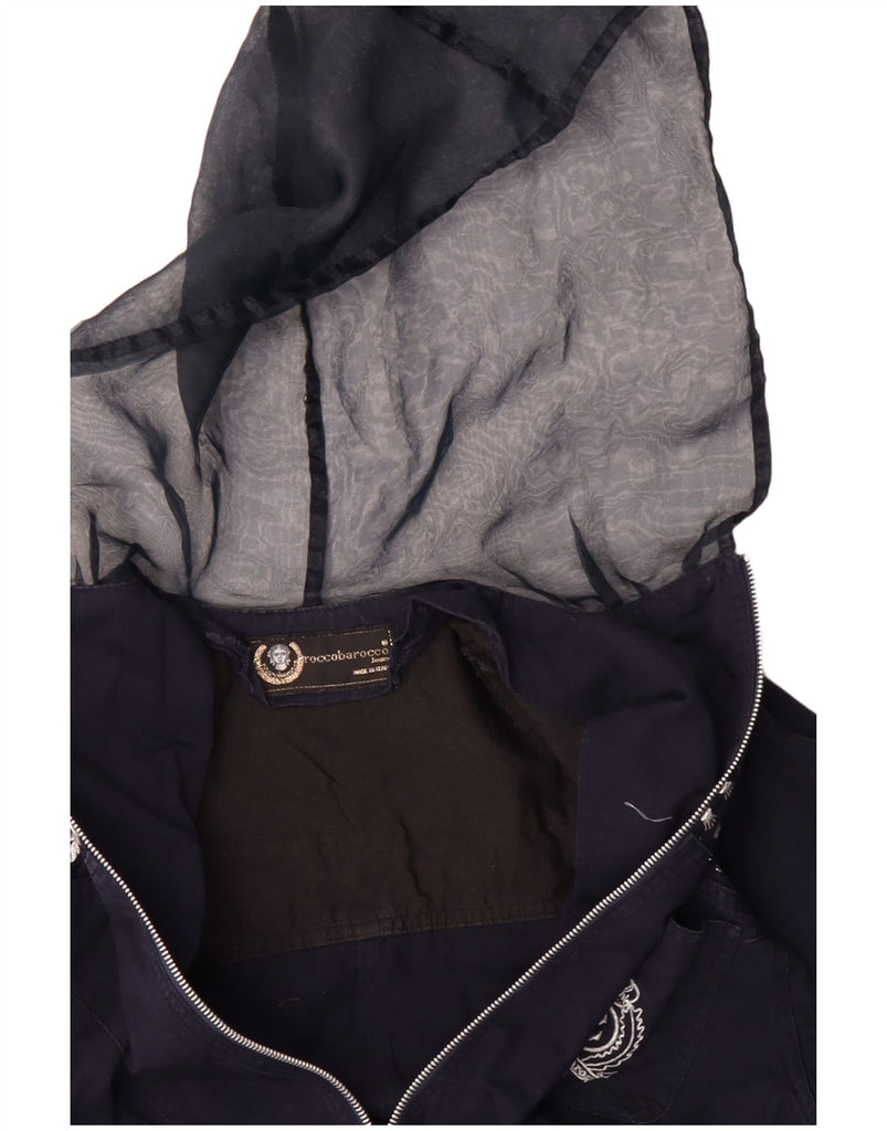 ROCCOBAROCCO Womens Hooded Bomber Jacket UK 12 Medium Navy Blue