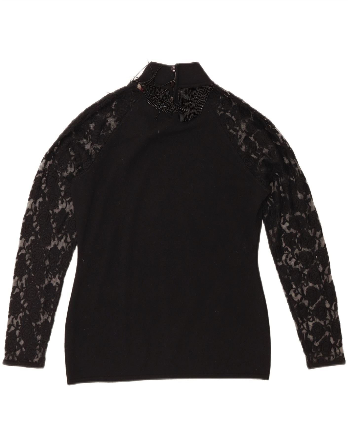 Roccobarocco Top para mujer de manga larga UK 44 Lana merino negra mediana