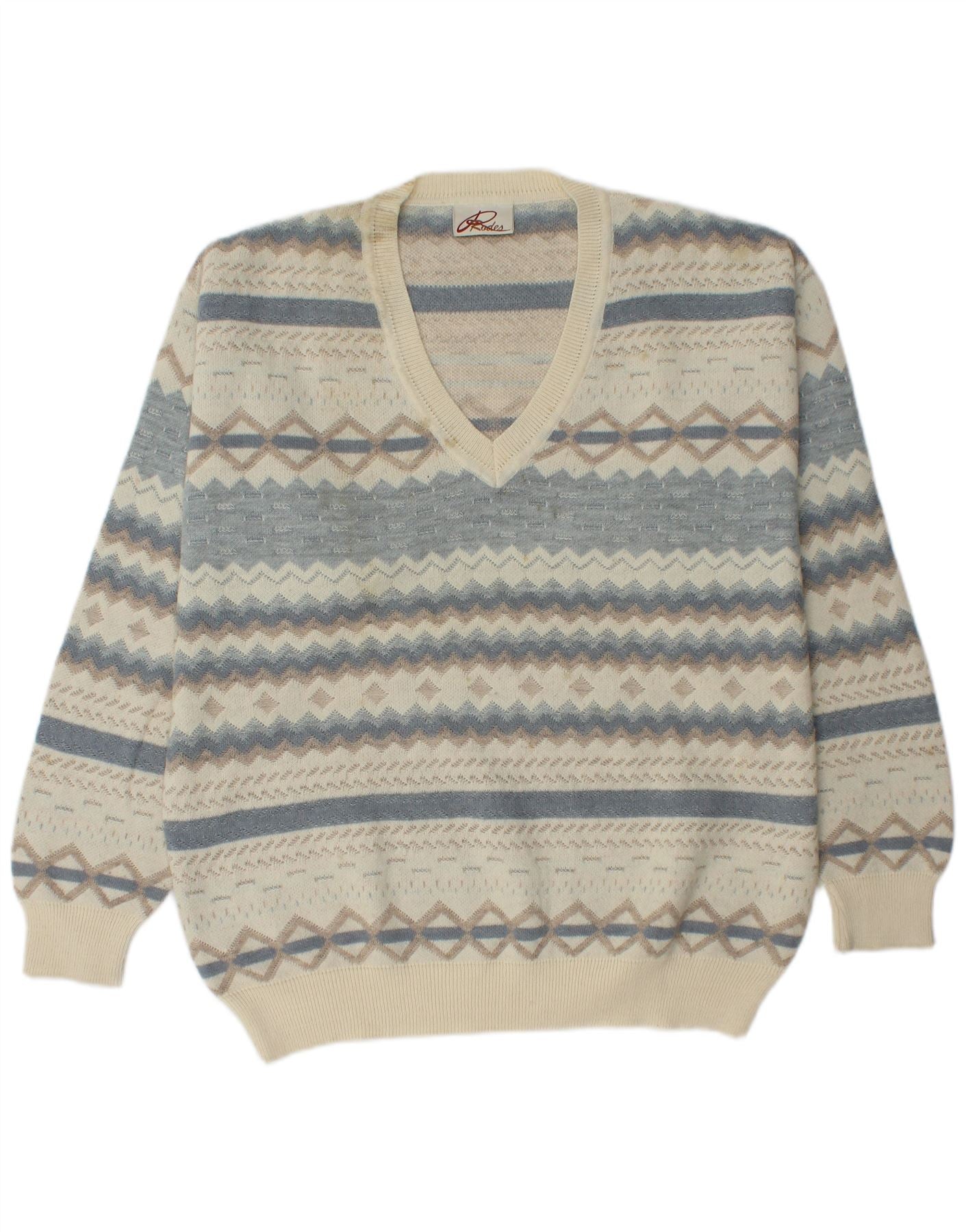 RODES Jersey con Cuello en V para Hombre XL Lana Virgen Geométrica Blanco Roto
