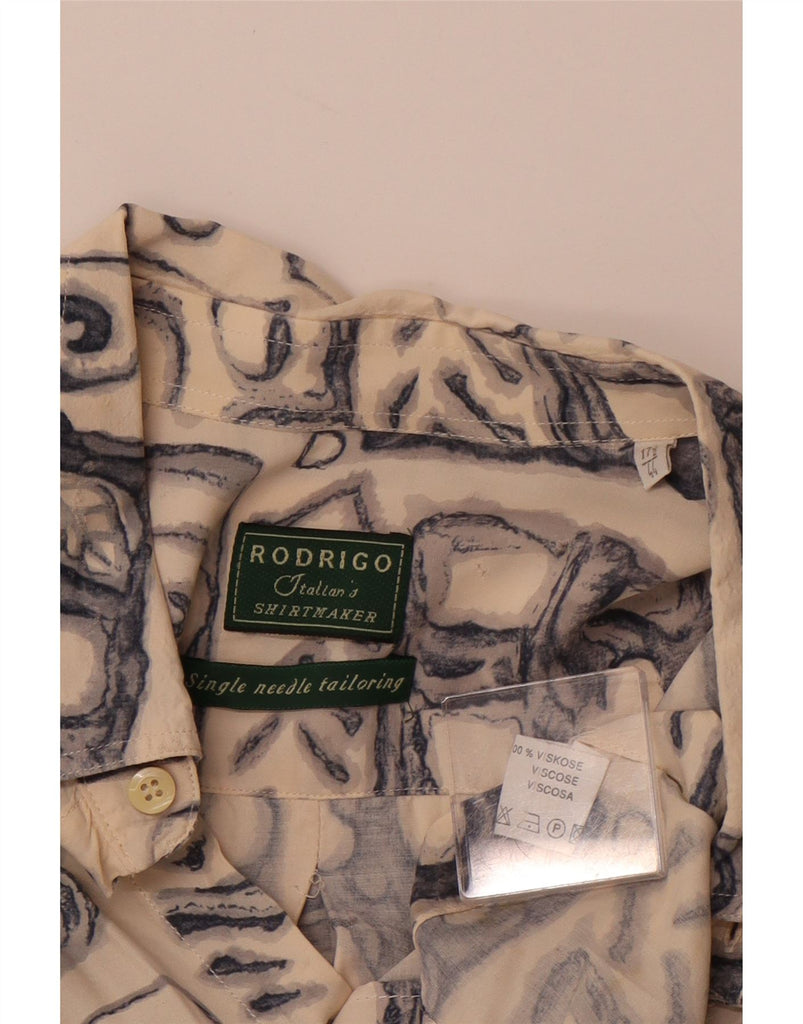 RODRIGO Camisa Manga Corta Hombre Talla 17 1/2 44 XL Viscosa Geométrica Blanca