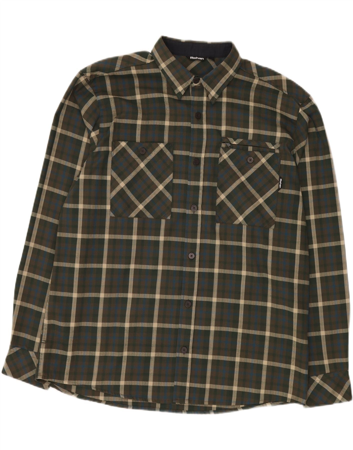 ROHAN Camisa de franela para hombre Poliéster a cuadros caqui grande