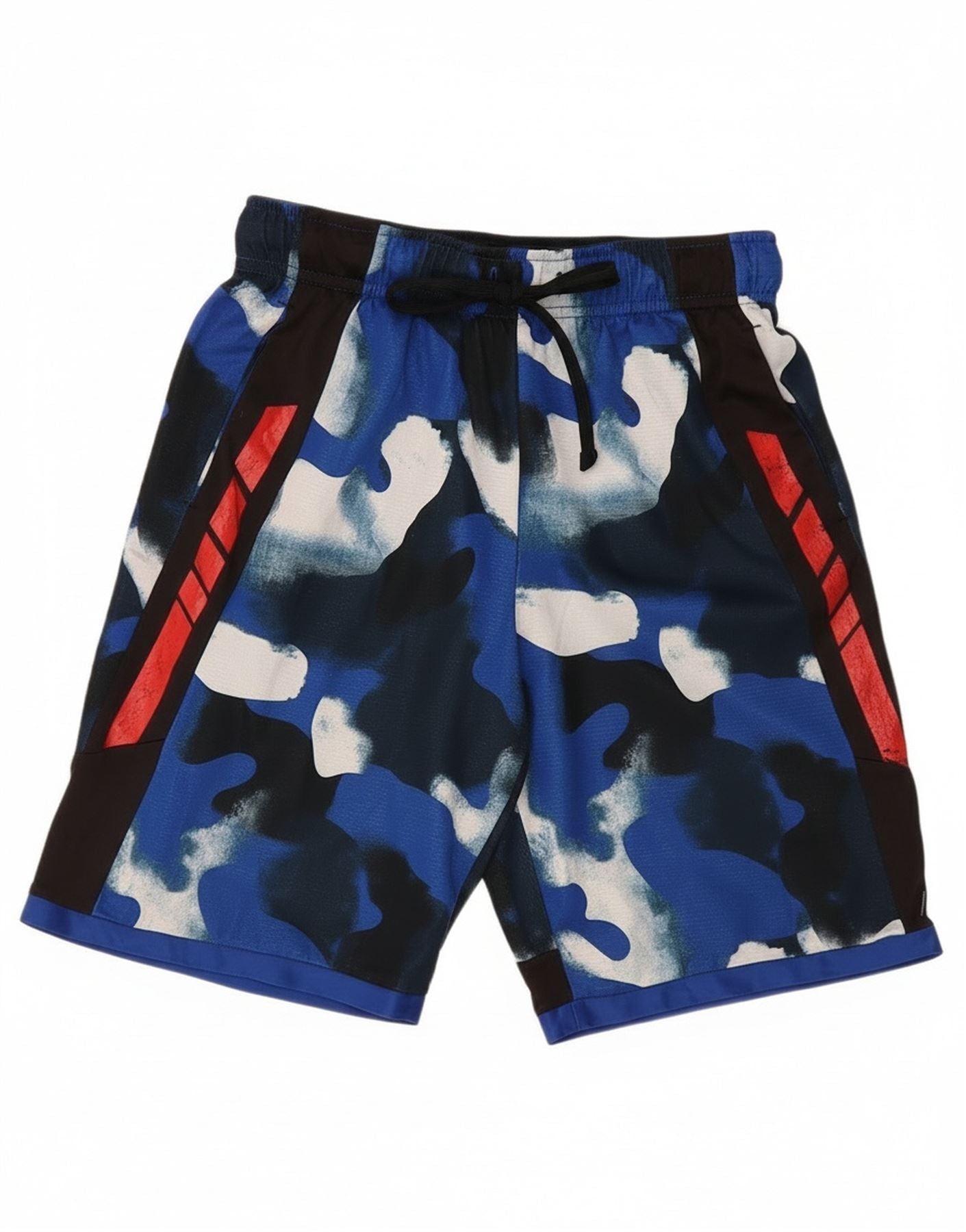 - Descripción de IA: Estos pantalones cortos Russell para niño están confeccionados con una mezcla de poliéster transpirable, ideal para uso activo. Presentan un dinámico patrón de camuflaje azul, que incorpora tonos de blanco y negro. La cintura elástica con cordón garantiza un ajuste atlético y seguro. Los bolsillos laterales ofrecen almacenamiento práctico. Tiras decorativas rojas recorren los costados y agregan un detalle visual llamativo. El diseño prioriza la comodidad y el movimiento para las actividades deportivas.