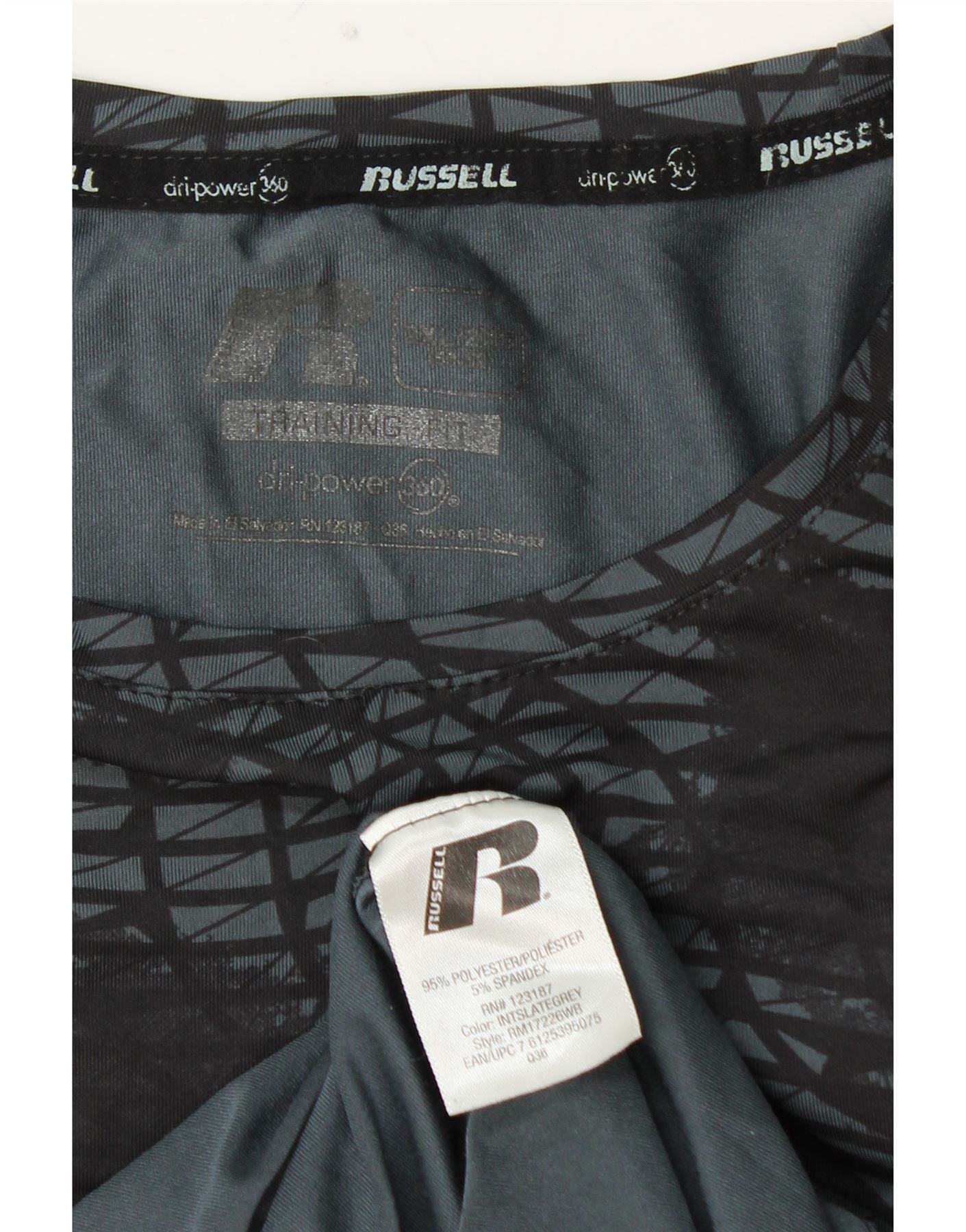 RUSSELL ATHLETIC Camiseta Dri-Power para hombre Top 2XL Poliéster geométrico gris