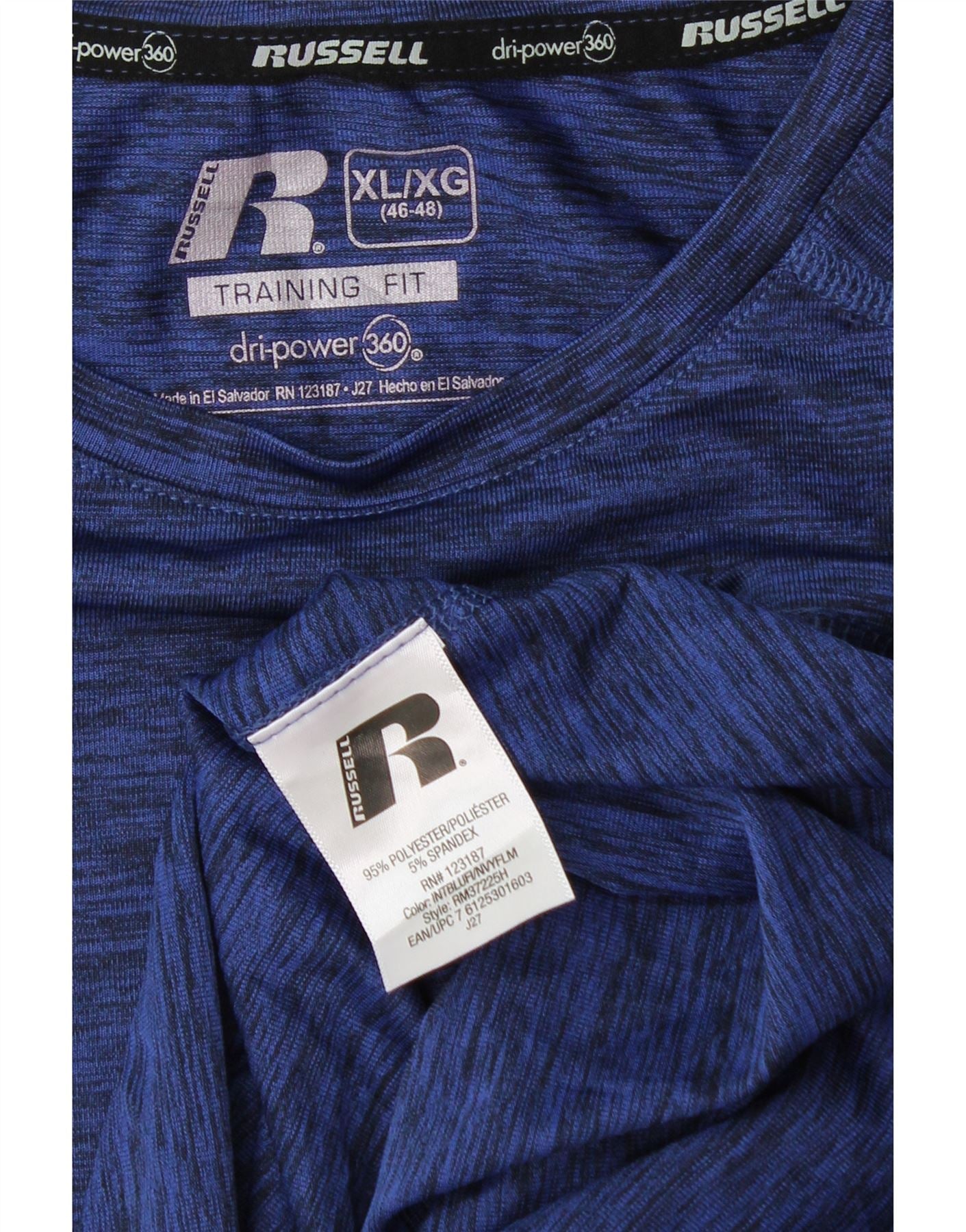 RUSSELL ATHLETIC Camiseta Dri-Power para hombre UK 46/48 XL Azul marino moteado