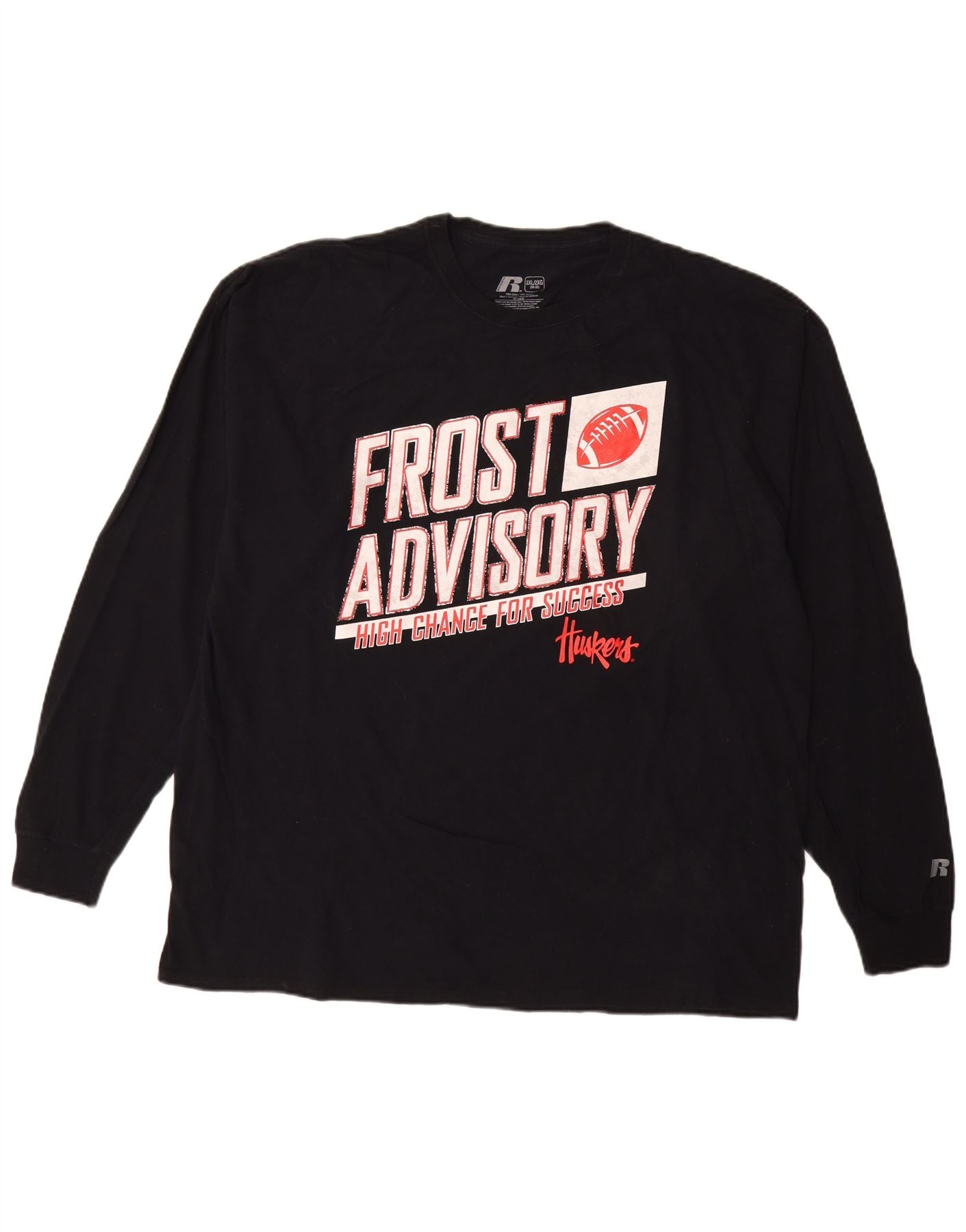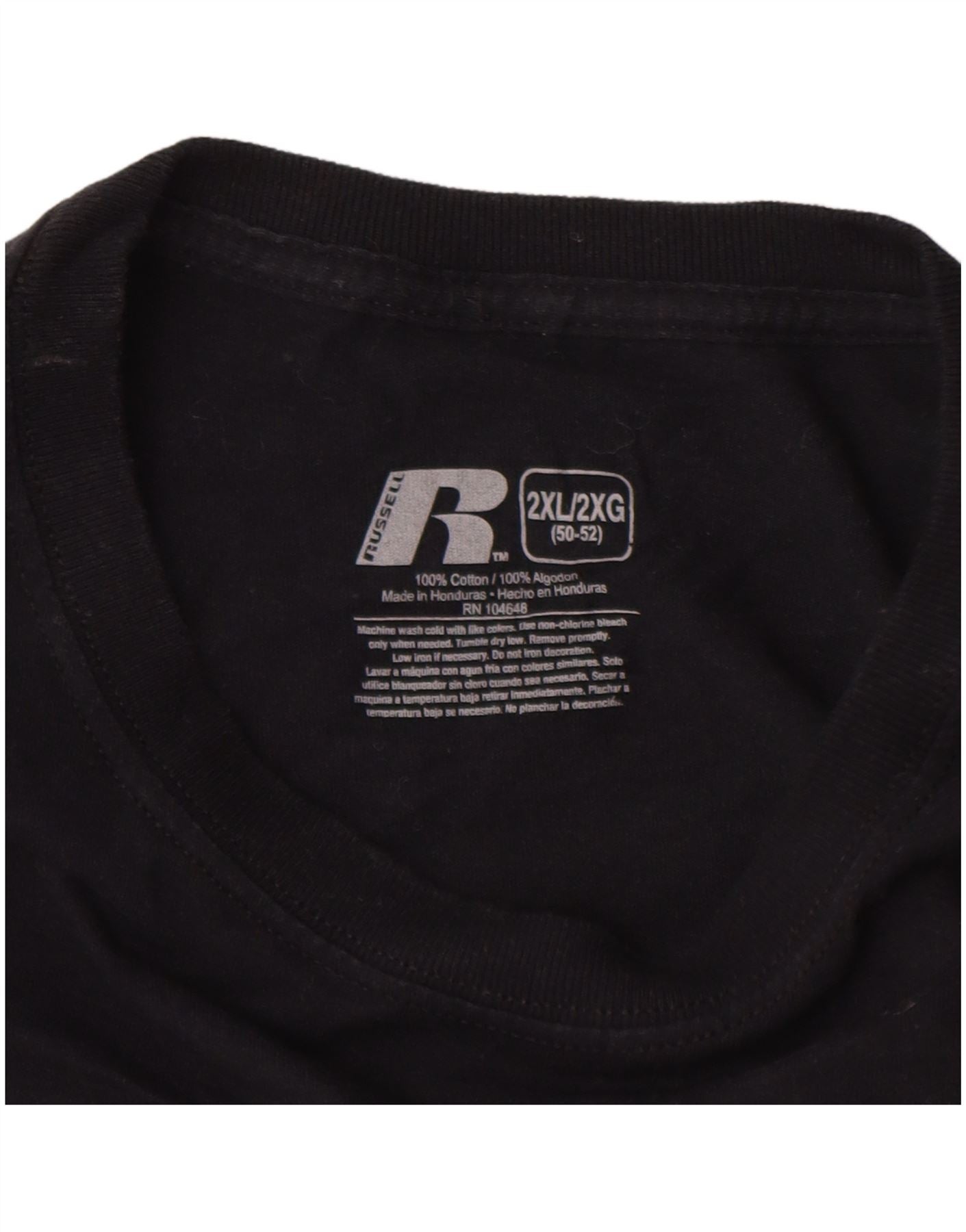 RUSSELL ATHLETIC Mens Huskers Graphic Top Manga Larga UK 50/52 2XL Negro
