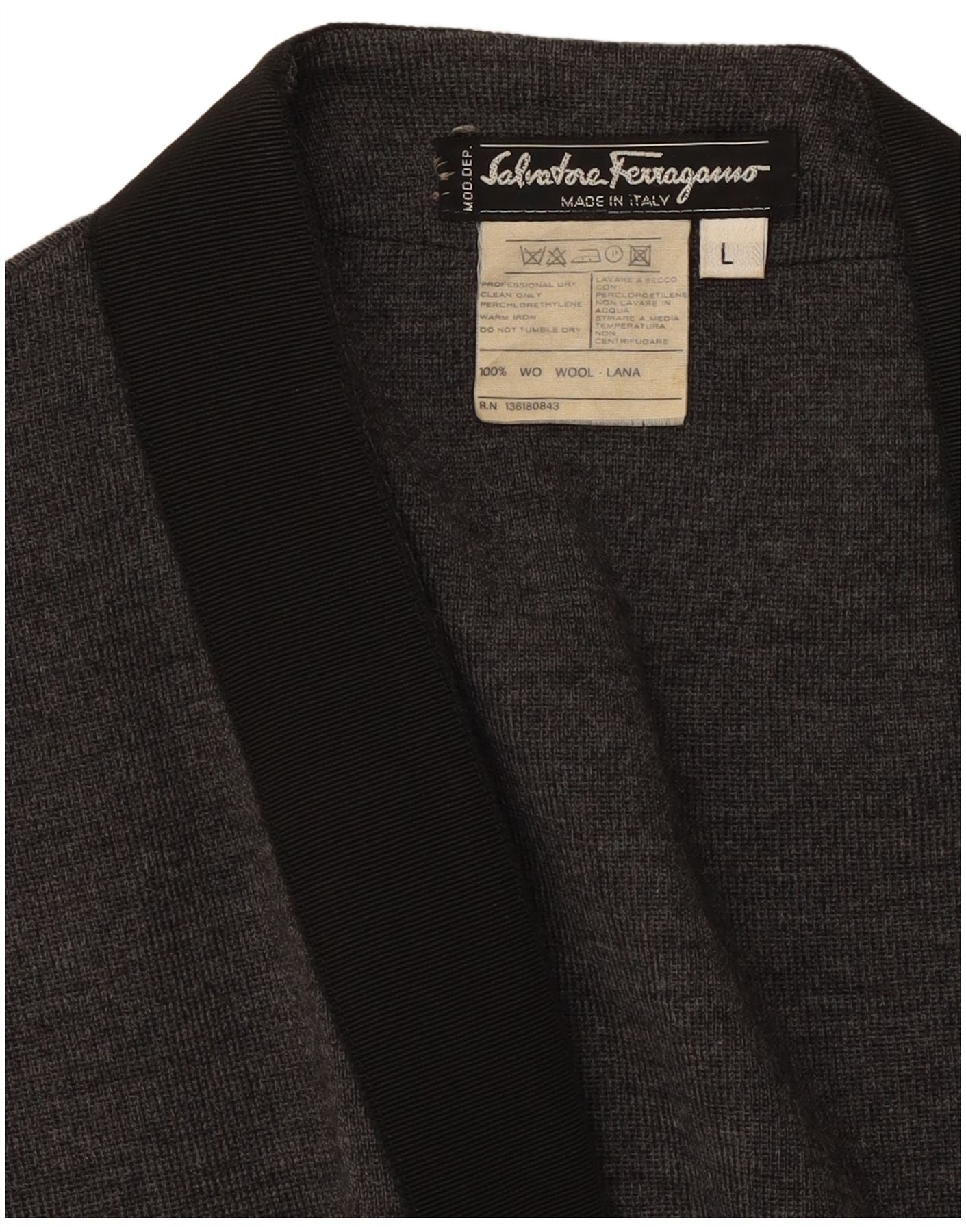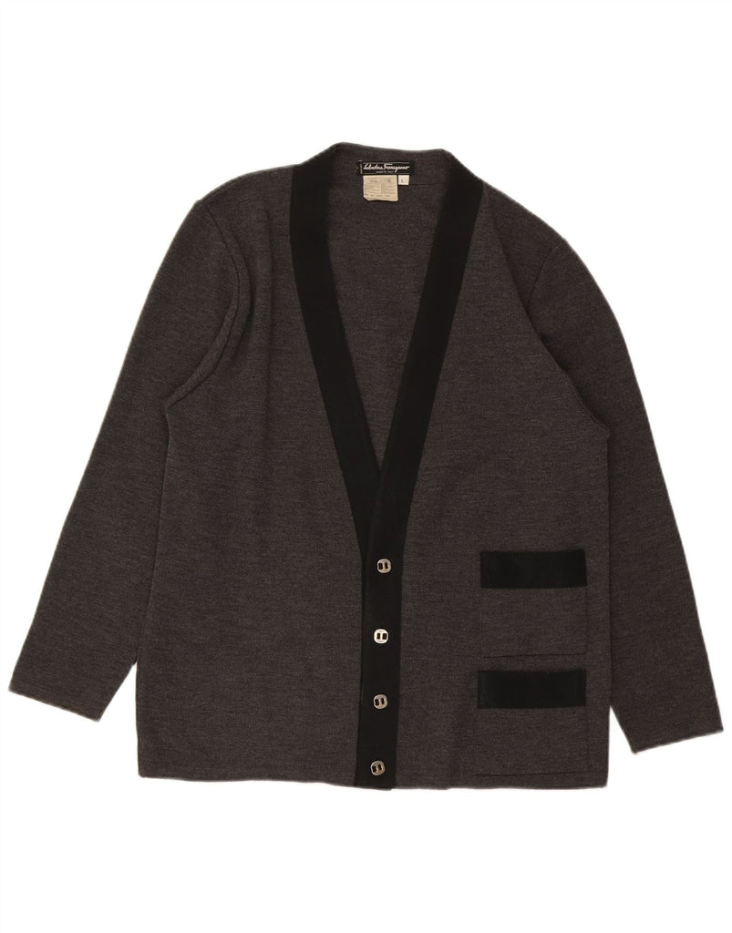 SALVATORE FERRAGAMO Mens Cardigan Sweater Large Grey Colourblock Wool