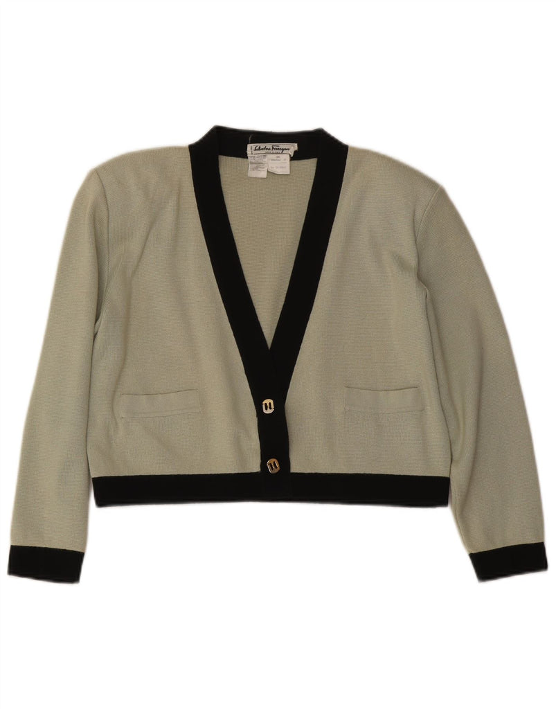 SALVATORE FERRAGAMO Womens Cardigan Sweater UK 14 Medium Green Colourblock