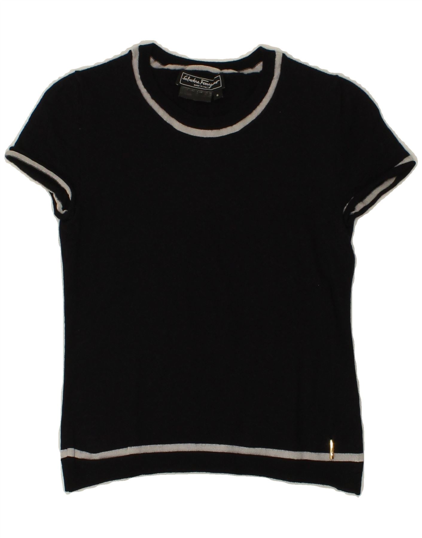 SALVATORE FERRAGAMO Womens T-Shirt Top UK 2 2XS Navy Blue Wool