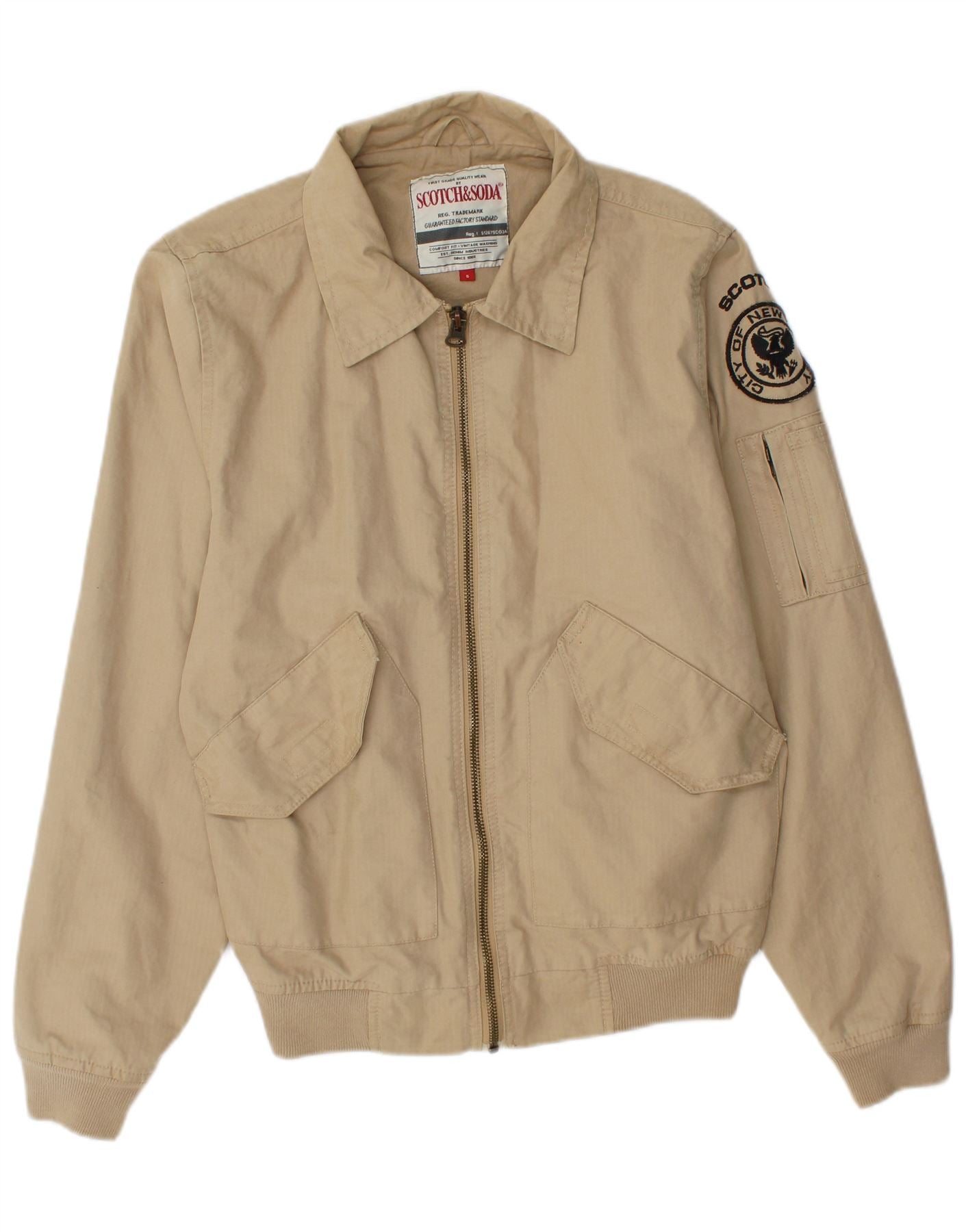SCOTCH & SODA Chaqueta bomber estampada para hombre UK 36 Small Beige Cotton