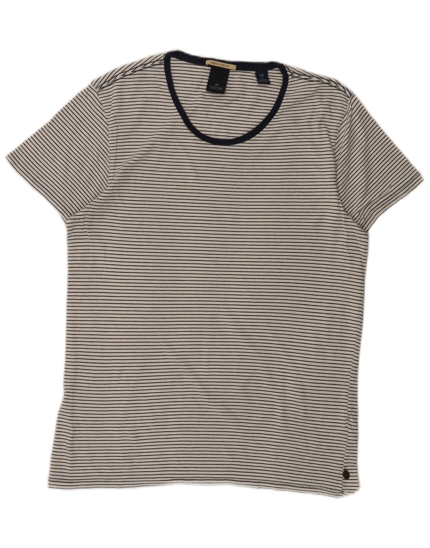 SCOTCH & SODA Hombre Camiseta Top Medium Blanco Rayas Algodón