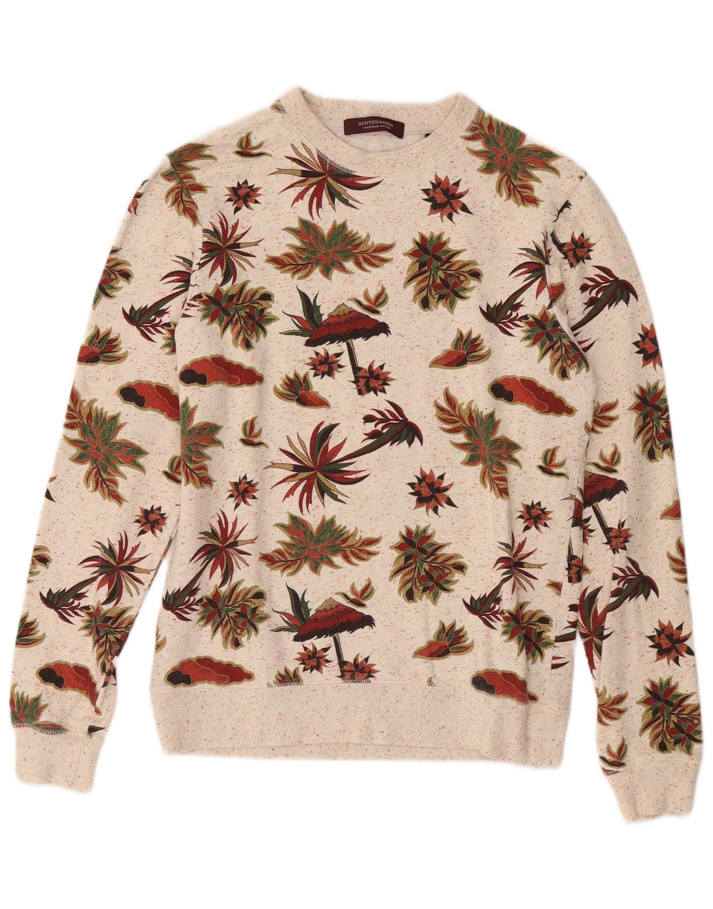 SCOTCH & SODA Womens Sweatshirt Jumper UK 10 Small Off White Floral Cotton