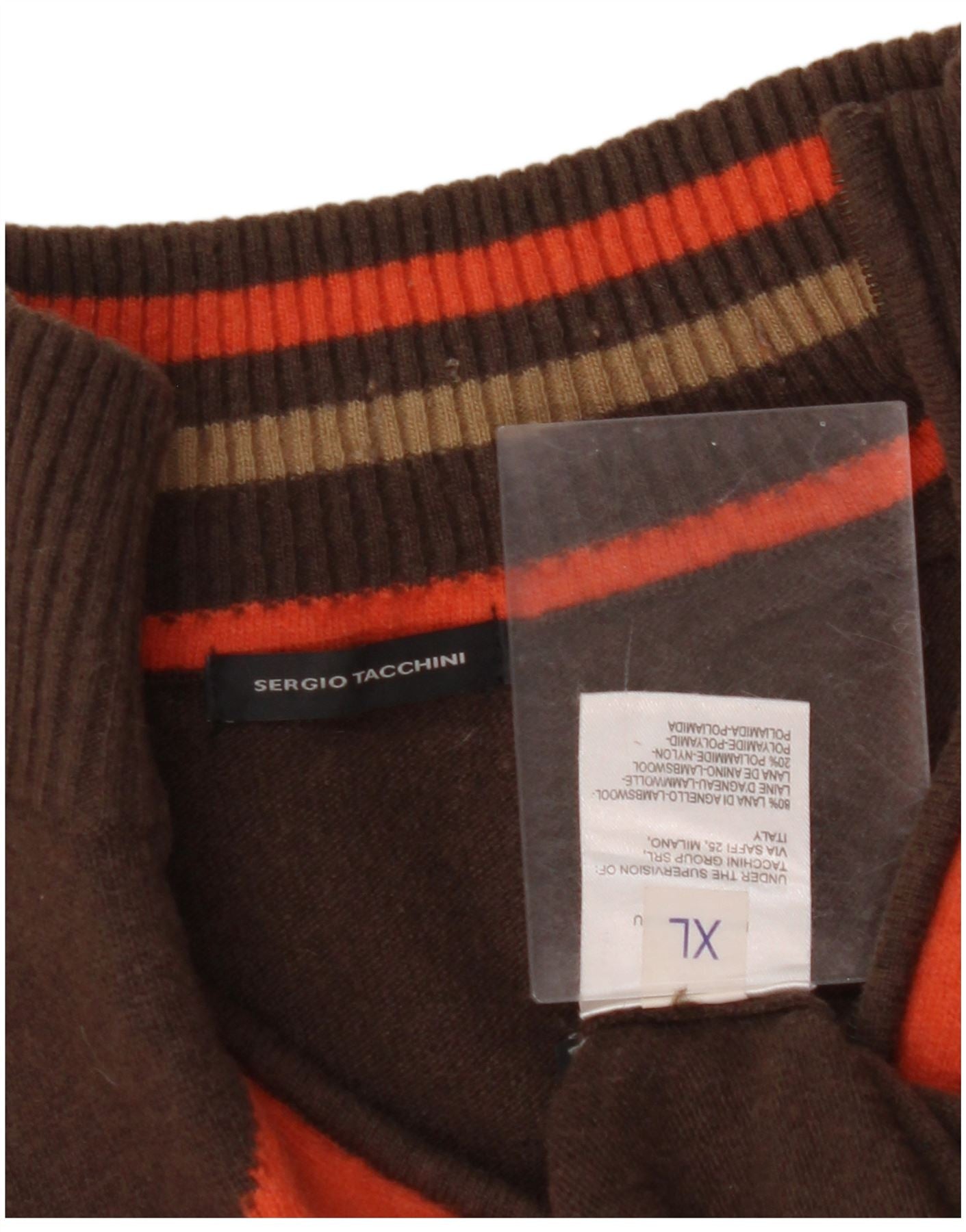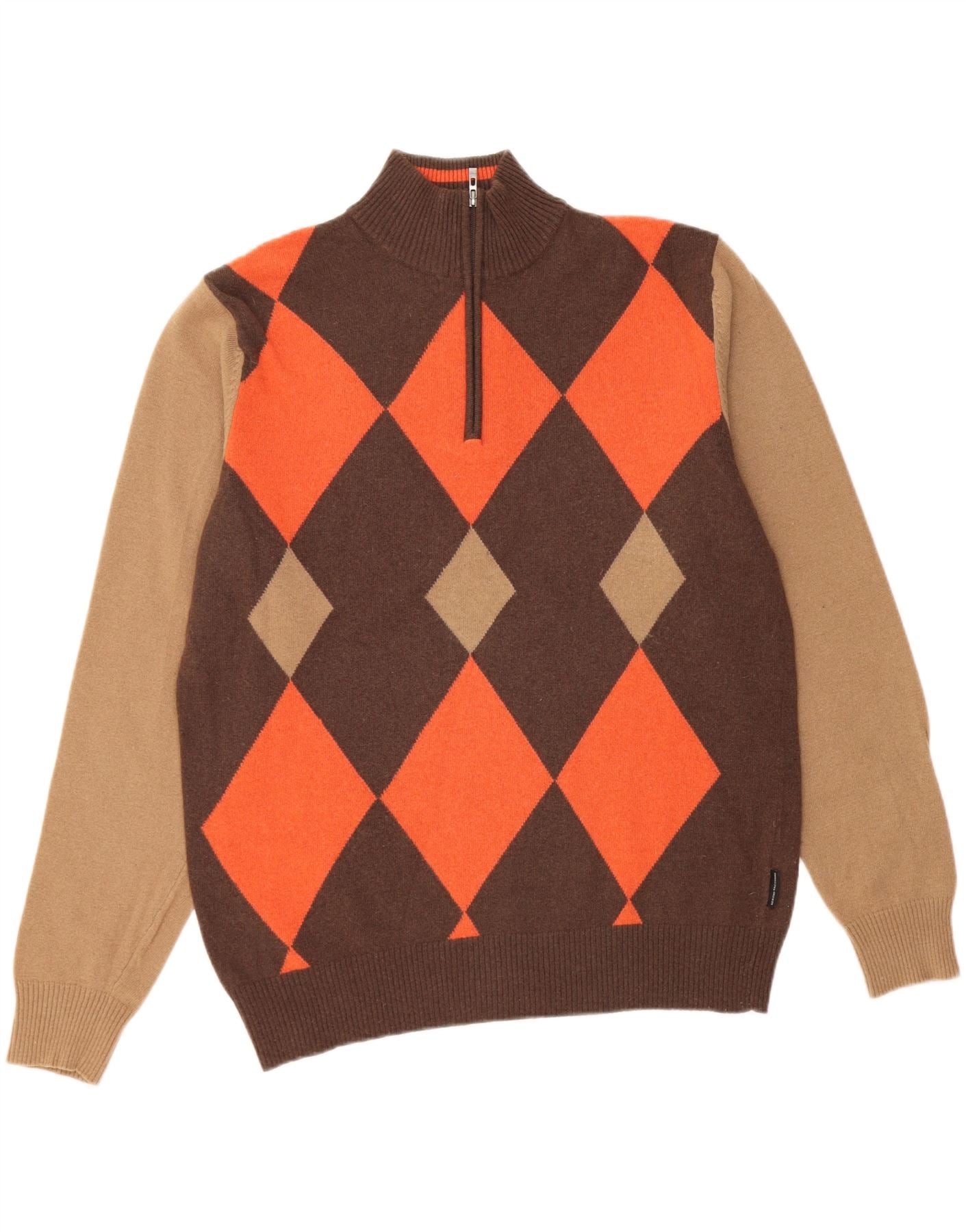 SERGIO TACCHINI Jersey con cuello y cremallera para hombre XL Marrón Argyle/Lana Diamante