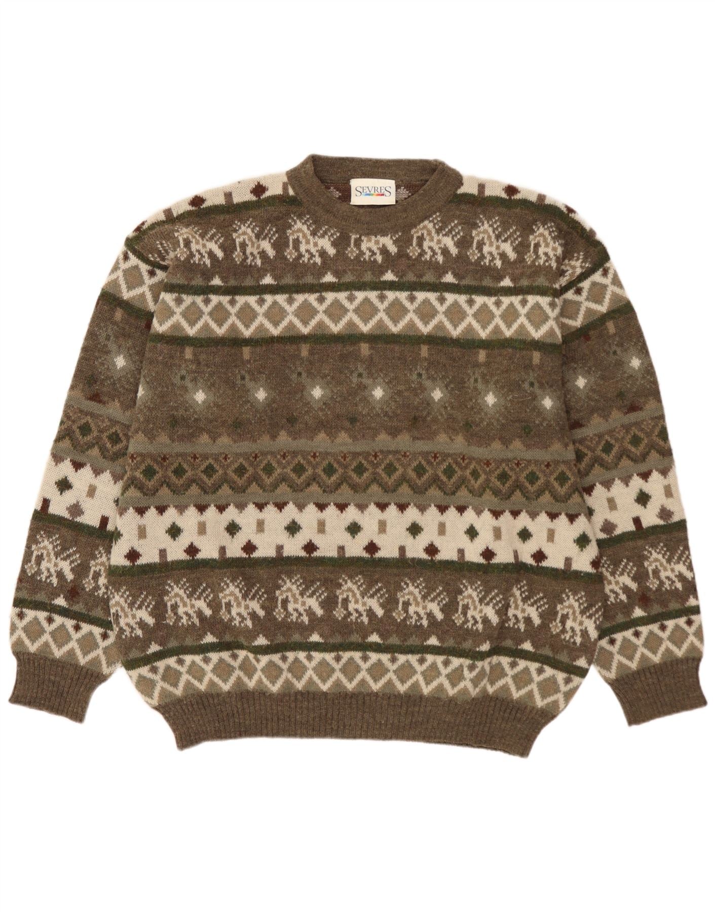 SEVRES Jersey de cuello redondo para hombre IT 52 Large Khaki Fair Isle Lana